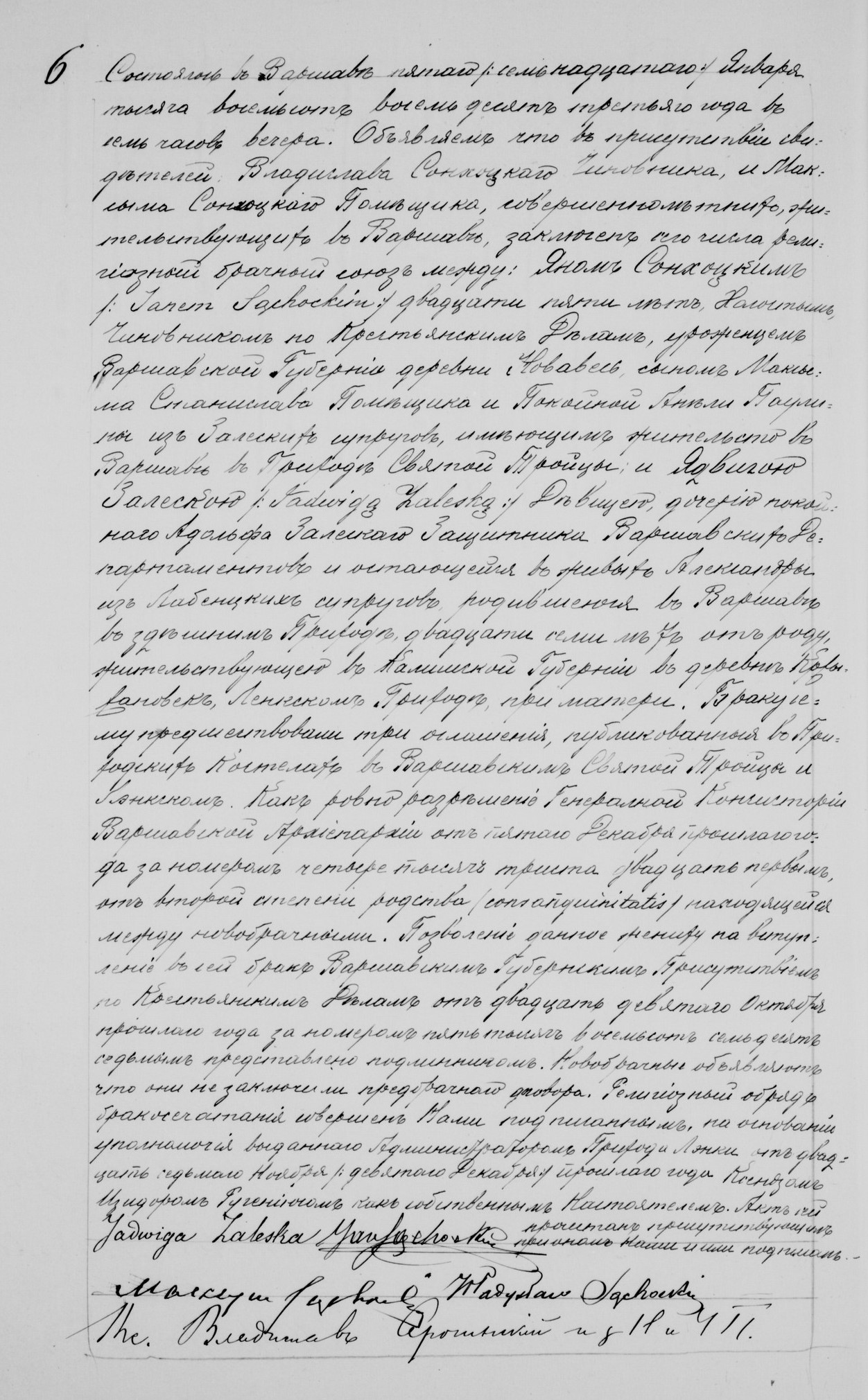 | sw.205651 | sw.206237 (sw.206237) | 17 | jan | 1883 | xpar.1448 | Akt małżeństwa: Warszawa św. Jan (obecn. m. Warszawa), rok 1883, nr aktu 6 [indeks na http://geneteka.genealodzy.pl/] http://metryki.genealodzy.pl/metryka.php?ar=1&zs=0161d&sy=1883&kt=2&skan=006-007.jpg [podgląd] | Akt ślubu obecny w bazie Geneteka |