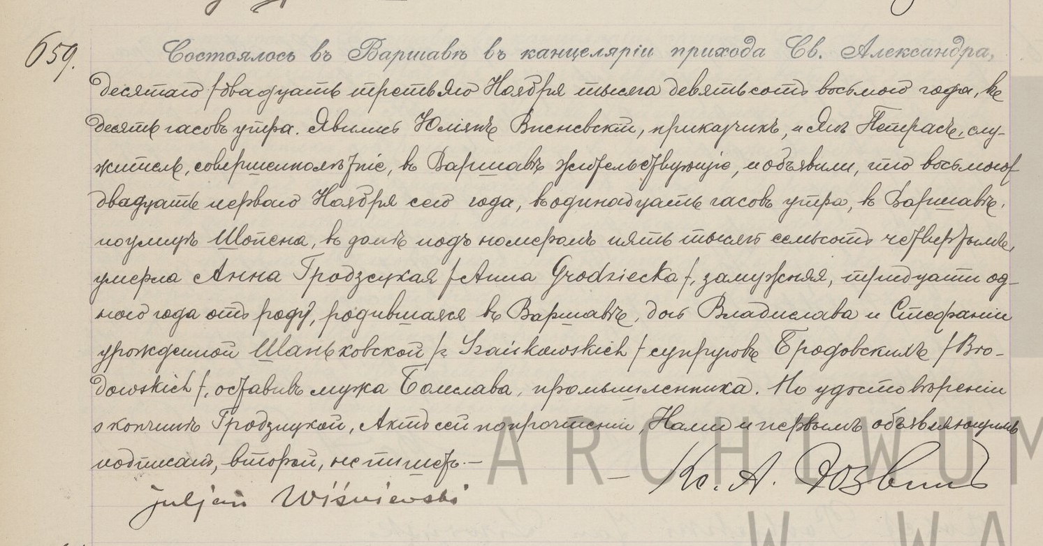 | genetekaz.11344659 | 21 | nov | 1908 | xpar.1442 | Akt zgonu: Warszawa św. Aleksander (obecn. m. Warszawa), 659/1908 http://localhost/mjm/aleksander_1908_159_37_0457.jpg [podglad] | Akt zgonu obecny w bazie Geneteka | ||