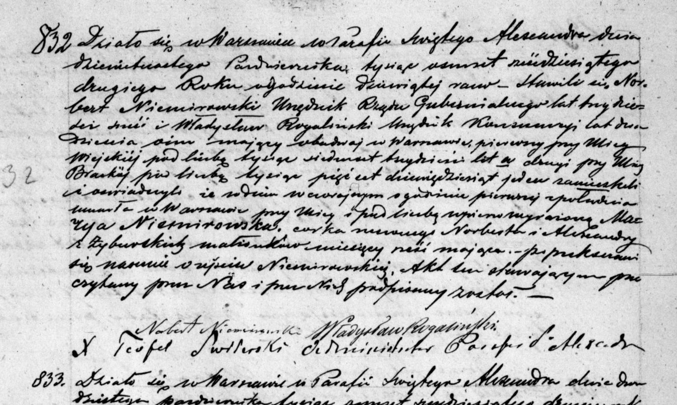 | sw.209749 | m | Norbert | | | | | Niemirowski | | | | | Akt małżeństwa: Warszawa Wsz. Św. (obecn. m. Warszawa), 20/1890 [indeks na http://geneteka.genealodzy.pl/] http://metryki.genealodzy.pl/metryka.php?ar=8&zs=9264d&sy=314&kt=1&skan=020.jpg [podgląd] |