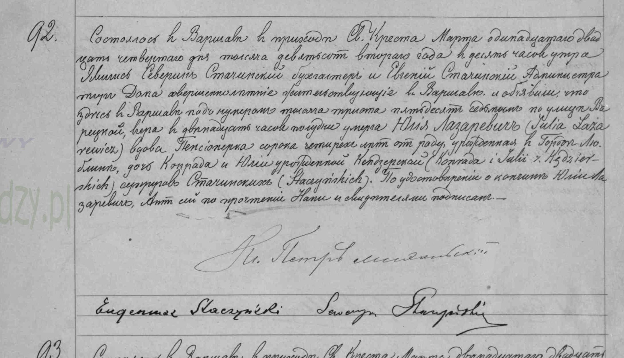| genetekaz.11248352 | 23 | mar | 1902 | | xpar.1450 | Akt zgonu: Warszawa św. Krzyż (obecn. m. Warszawa), 92/1902 http://metryki.genealodzy.pl/metryki.php?op=kt&ar=1&zs=0158d&sy=1902&kt=3 [podglad] | | Akt zgonu obecny w bazie Geneteka |