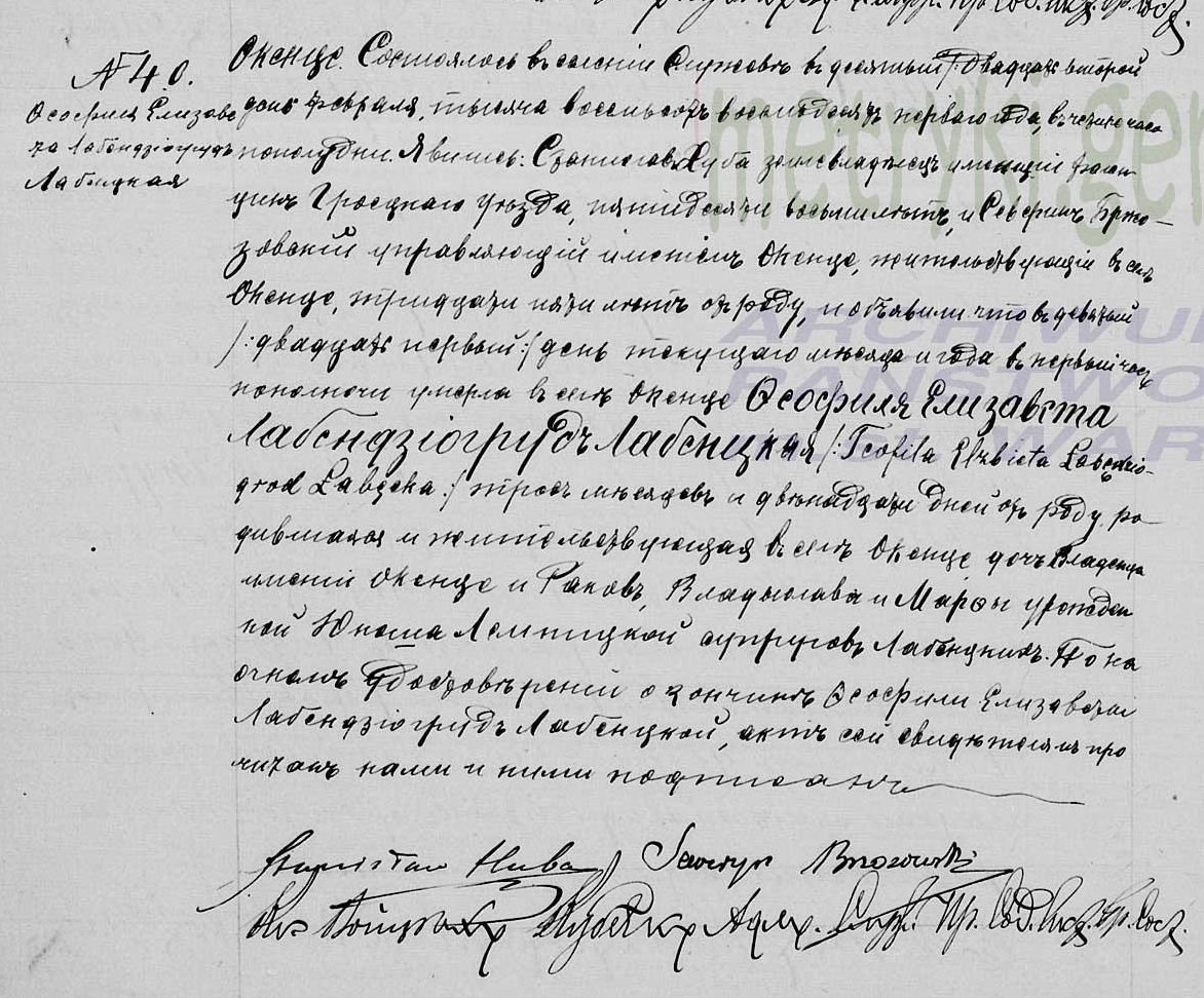 Teofila Elżbieta Łabęcka h. Łabędziogrot (1880–1881)