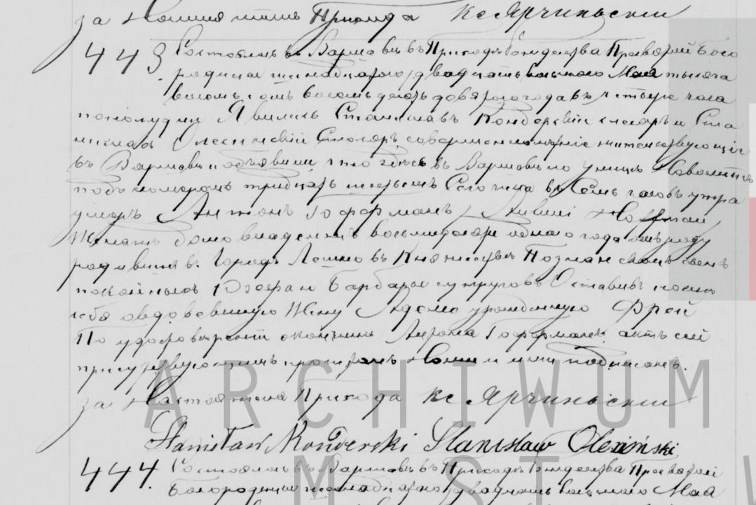 | sw.224456 | sw.224457 (sw.224457) | sw.224458 (sw.224458) | Akt małżeństwa: Warszawa św. Andrzej (obecn. m. Warszawa), 97/1836 [indeks na http://geneteka.genealodzy.pl/] http://metryki.genealodzy.pl/metryki.php?op=kt&ar=1&zs=0159d&sy=1836&kt=2 [podgląd] |