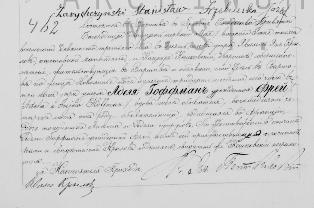 | sw.218056 | f | Adela | Frey | Akt małżeństwa: Warszawa św. Krzyż (obecn. m. Warszawa), 189/1855 [indeks na http://geneteka.genealodzy.pl/] http://metryki.genealodzy.pl/metryki.php?op=kt&ar=1&zs=0158d&sy=1855&kt=2 [podgląd] | ||||||||