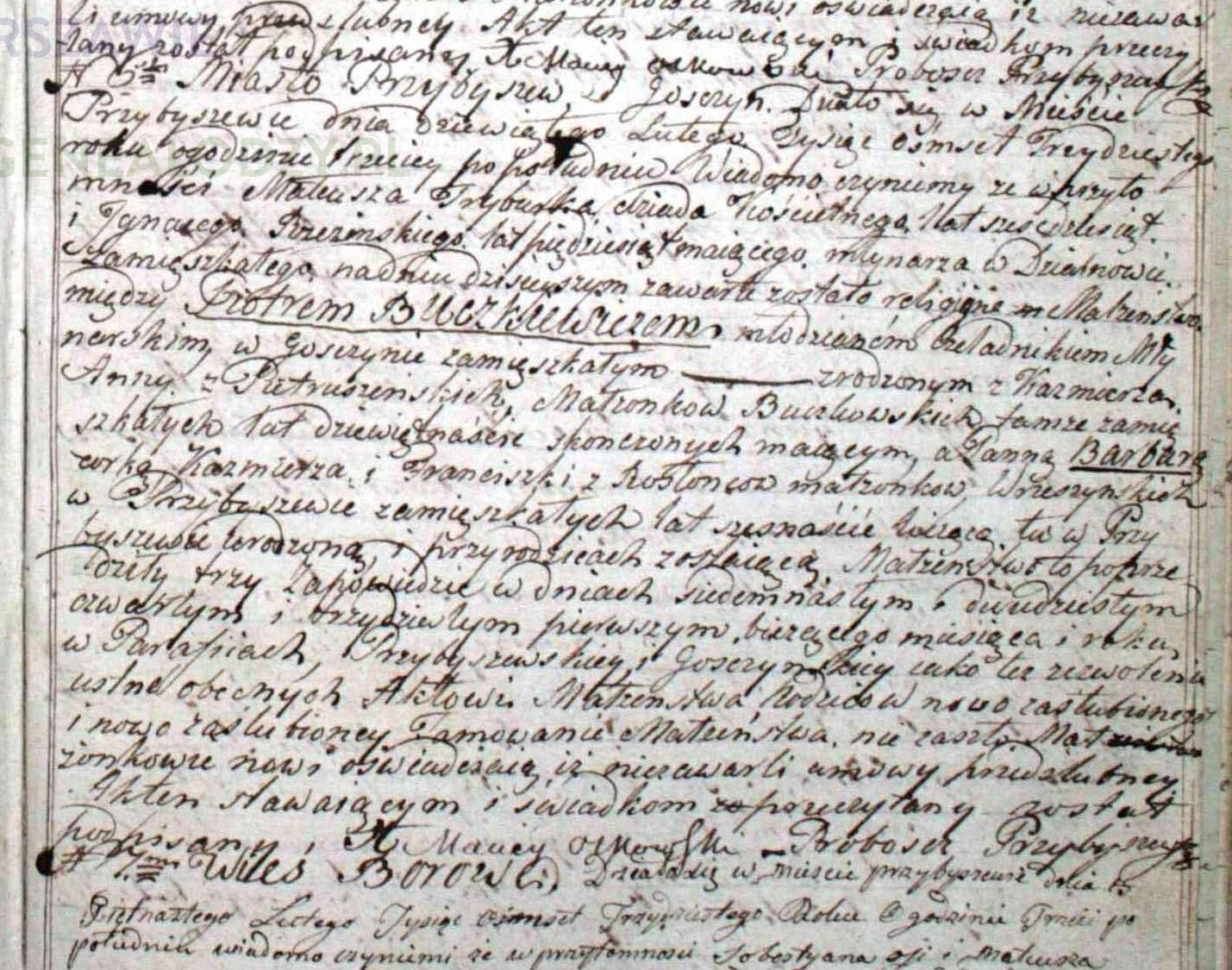 | sw.223374 | sw.223375 (sw.223375) | sw.223376 (sw.223376) | Akt małżeństwa: Przybyszew (obecn. woj. mazow.), 22/1810 [indeks na http://geneteka.genealodzy.pl/] http://metryki.genealodzy.pl/metryki.php?op=kt&ar=2&zs=1438d&sy=110&kt=2 [podgląd] |