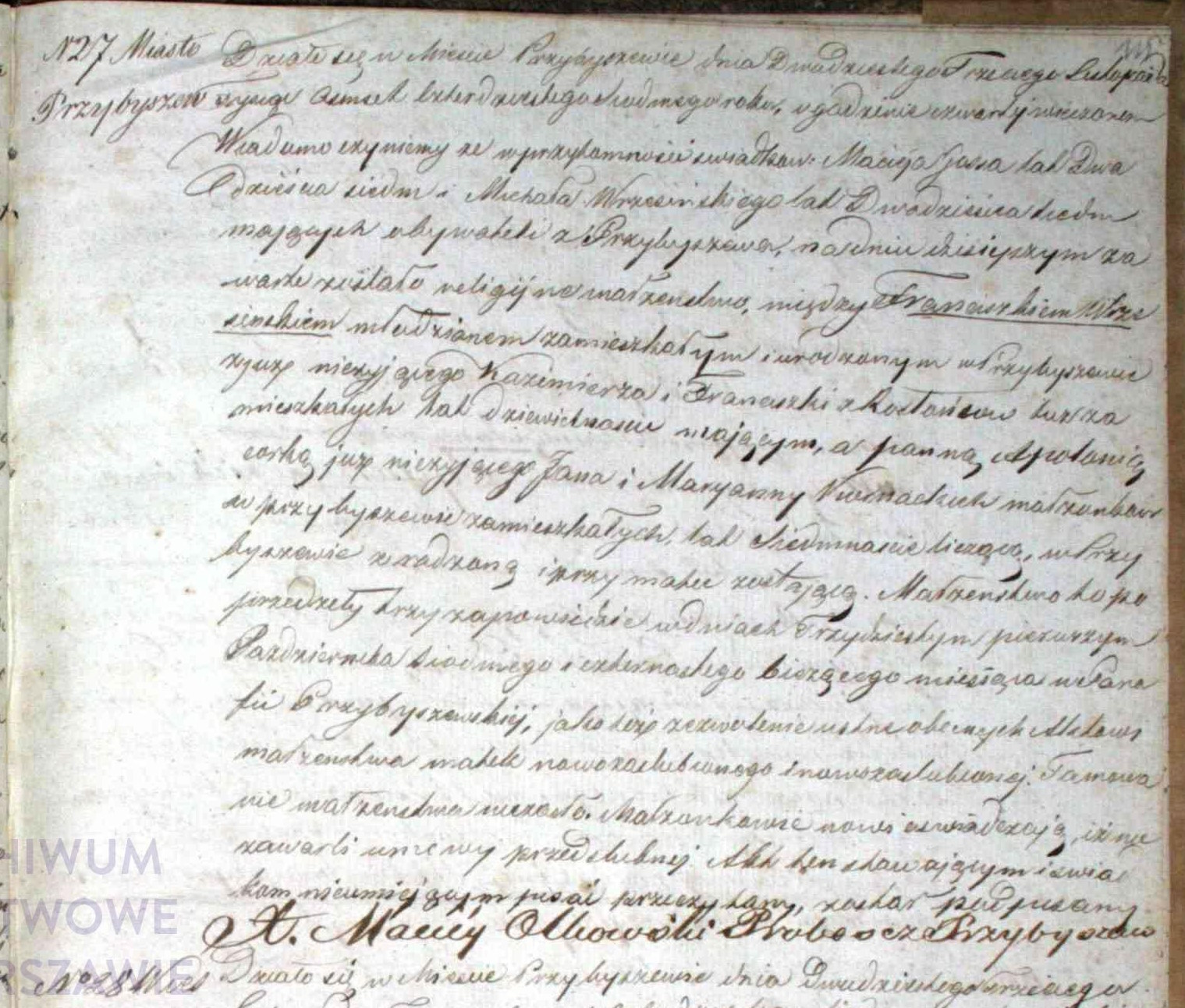 | sw.230327 | sw.230327 | sw.218590 (sw.218590) | sw.218591 (sw.218591) | Akt małżeństwa: Przybyszew (obecn. woj. mazow.), 32/1849 [indeks na http://geneteka.genealodzy.pl/] http://metryki.genealodzy.pl/metryki.php?op=kt&ar=2&op=kt&zs=1311d&sy=153&kt=2 [podgląd] |