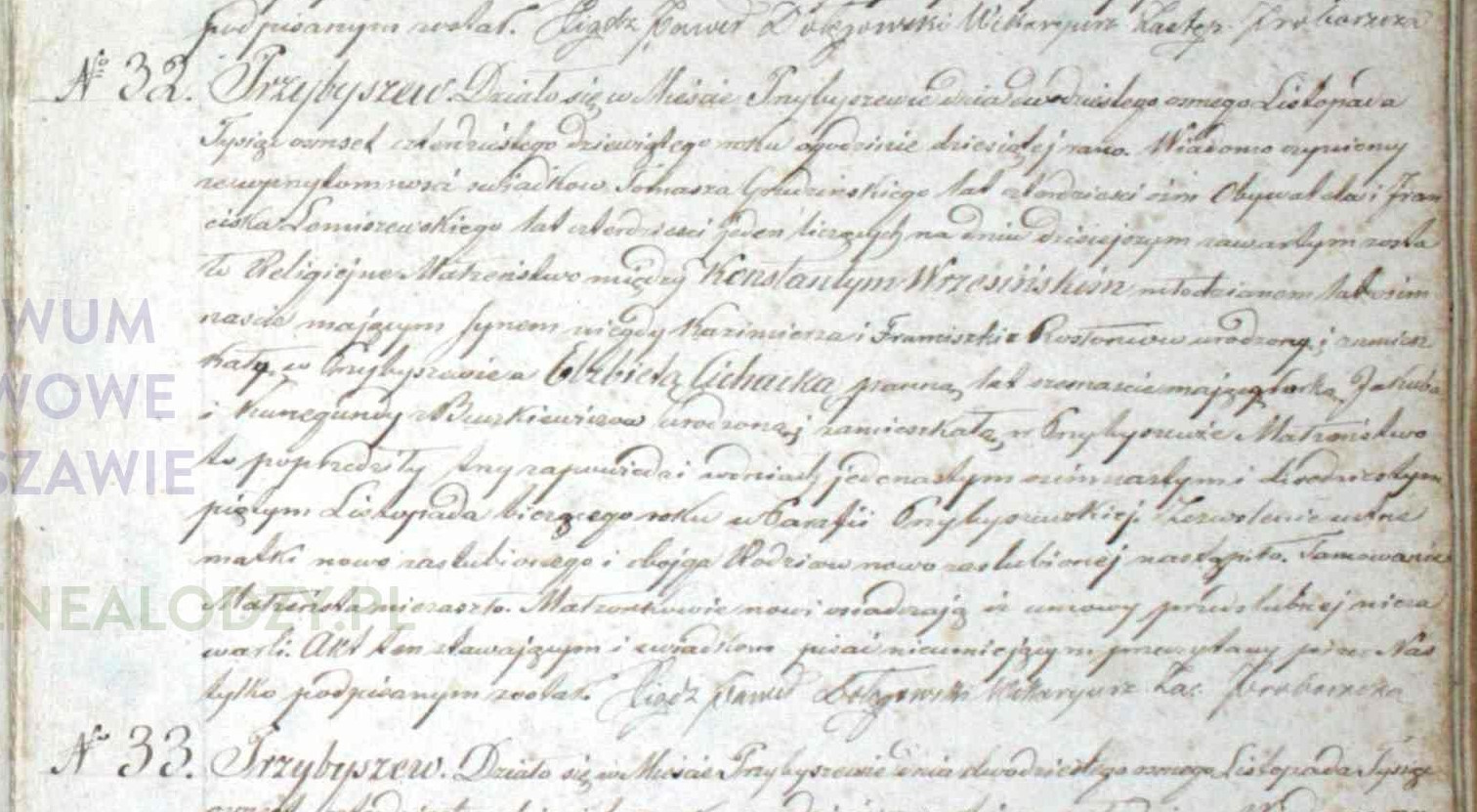 | sw.233306 | sw.233306 | sw.218590 (sw.218590) | sw.218591 (sw.218591) | Akt małżeństwa: Przybyszew (obecn. woj. mazow.), 33/1844 [indeks na http://geneteka.genealodzy.pl/] http://metryki.genealodzy.pl/metryki.php?op=kt&ar=2&op=kt&zs=1311d&sy=148&kt=2 [podgląd] |