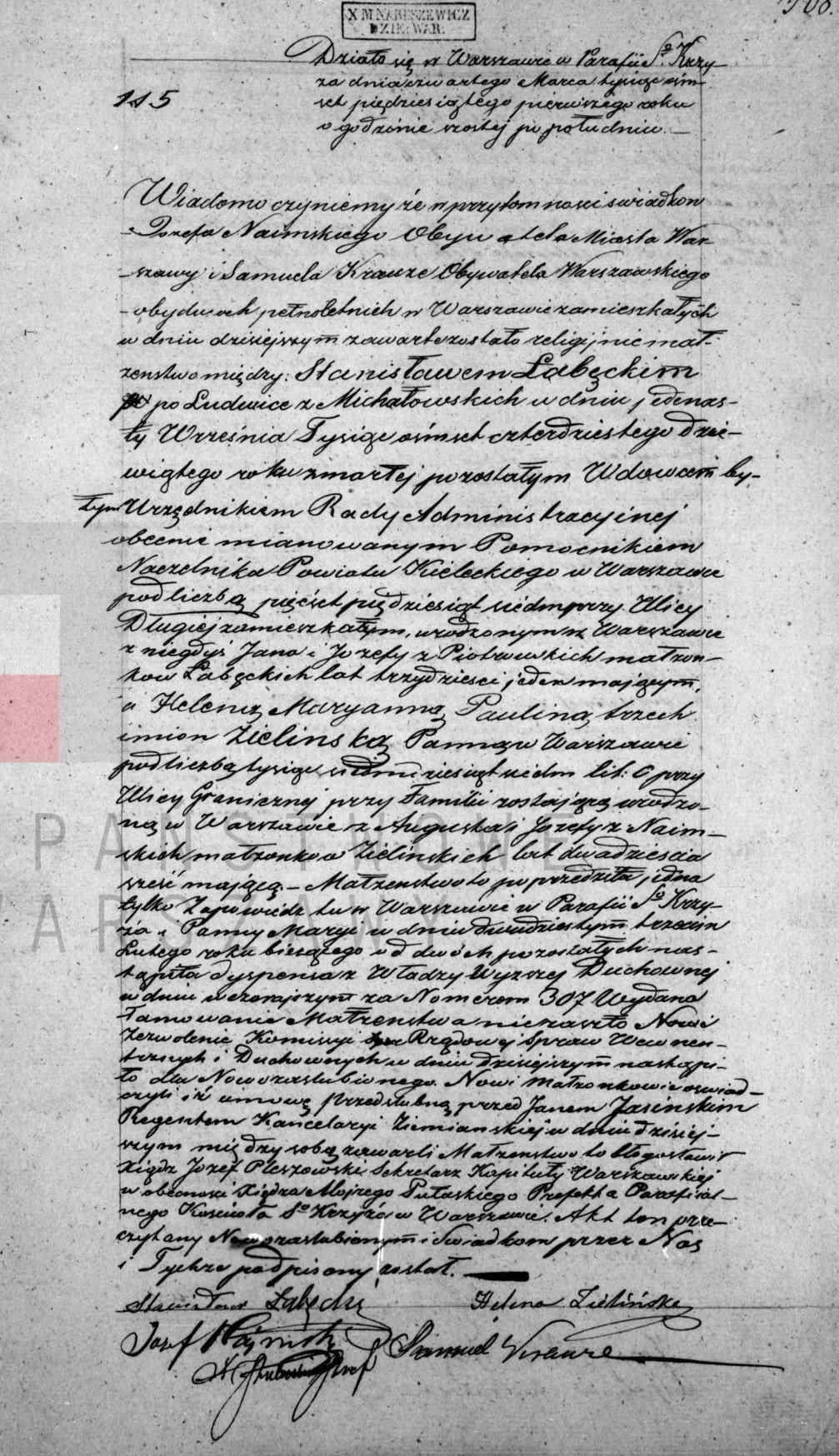 | sw.281847 | sw.281847 | sw.221730 (sw.221730) | sw.221731 (sw.221731) | Akt małżeństwa: Warszawa św. Krzyż (obecn. m. Warszawa), 115/1851 [indeks na http://geneteka.genealodzy.pl/] http://metryki.genealodzy.pl/metryki.php?op=kt&ar=1&zs=0158d&sy=1851&kt=2 [podgląd] |