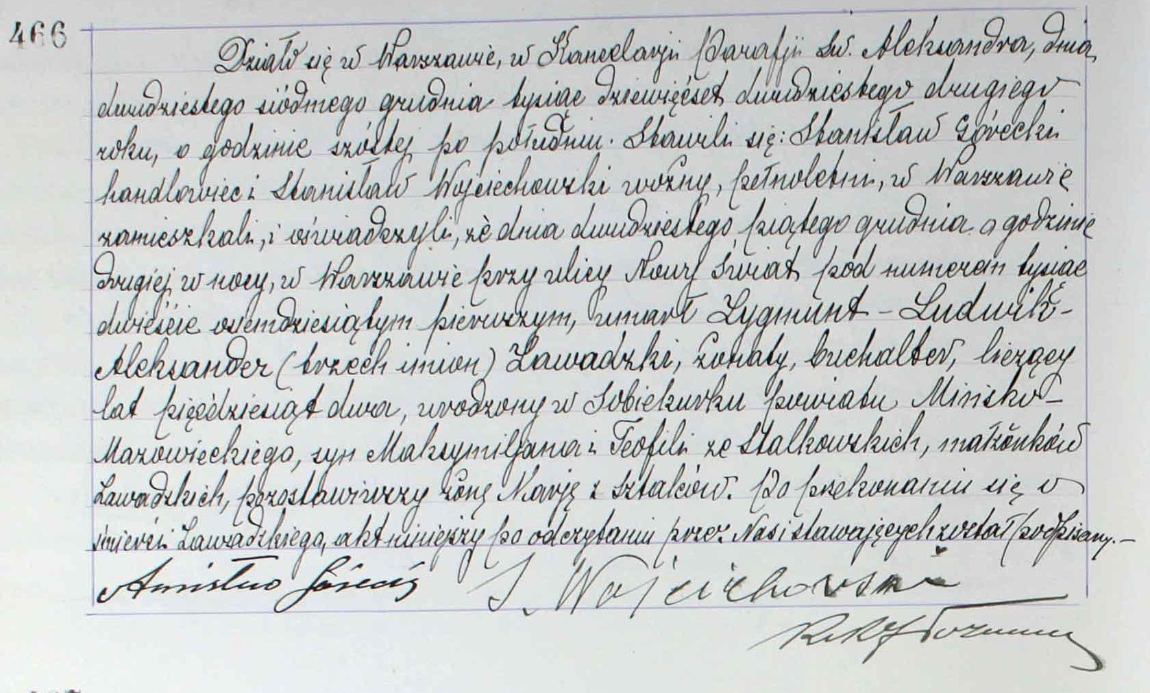 | sw.1041459 | sw.1041459 | sw.20007 (sw.20007) | sw.222641 (sw.222641) | Akt zgonu: Warszawa św. Aleksander (obecn. m. Warszawa), 466/1922 [indeks na http://geneteka.genealodzy.pl/] http://localhost/mjm/aleksander_1922_466-471.jpg [podgląd] |