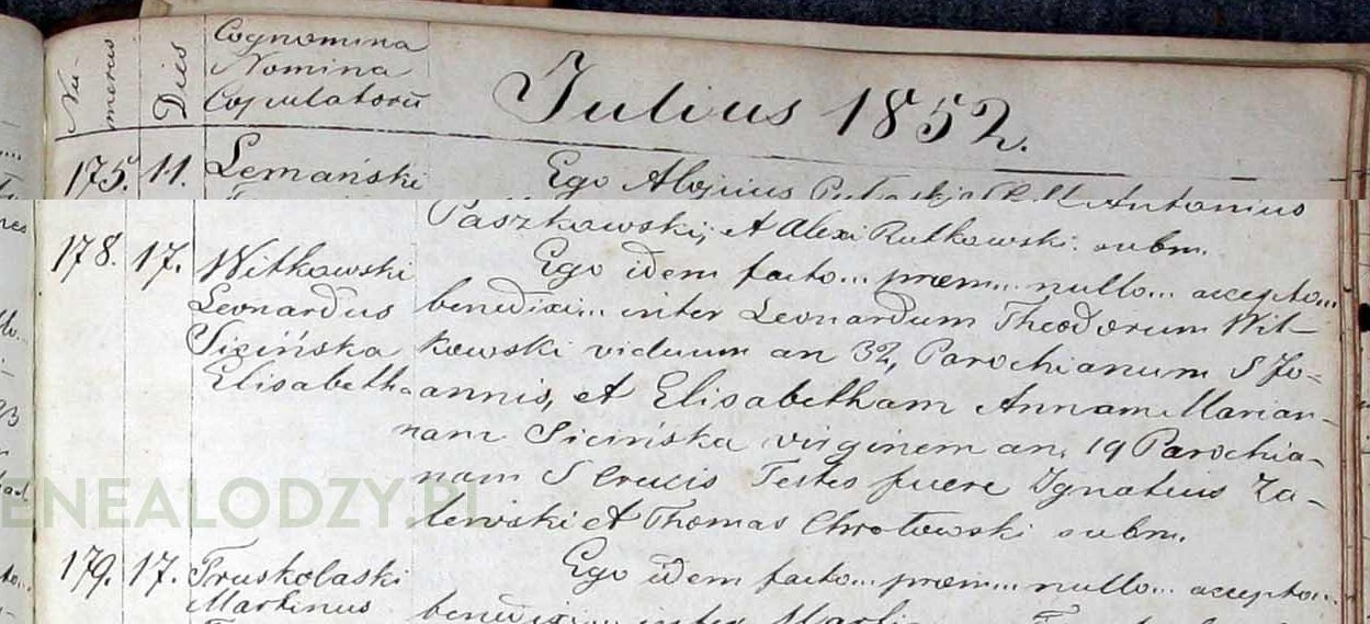 | sw.223097 | sw.223098 (sw.223098) | sw.223099 (sw.223099) | Akt małżeństwa: Warszawa św. Jan (obecn. m. Warszawa), 136/1850 [indeks na http://geneteka.genealodzy.pl/] http://metryki.genealodzy.pl/metryki.php?op=kt&ar=1&zs=0161d&sy=1850&kt=2 [podgląd] |