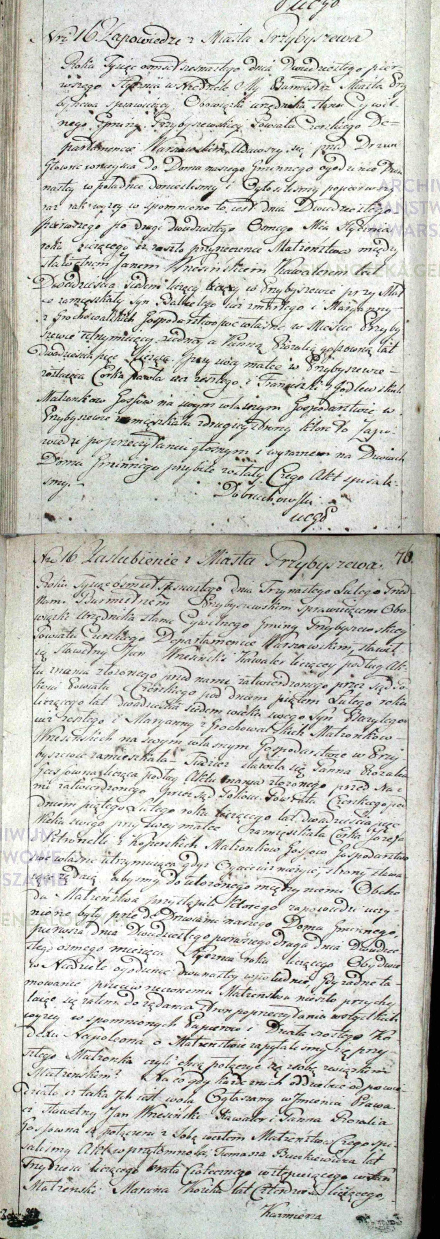 | sw.218590 | sw.223371 | sw.223372 (sw.223372) | sw.223373 (sw.223373) | Akt małżeństwa: Przybyszew (obecn. woj. mazow.), 22/1810 [indeks na http://geneteka.genealodzy.pl/] http://metryki.genealodzy.pl/metryki.php?op=kt&ar=2&zs=1438d&sy=110&kt=2 [podgląd] |