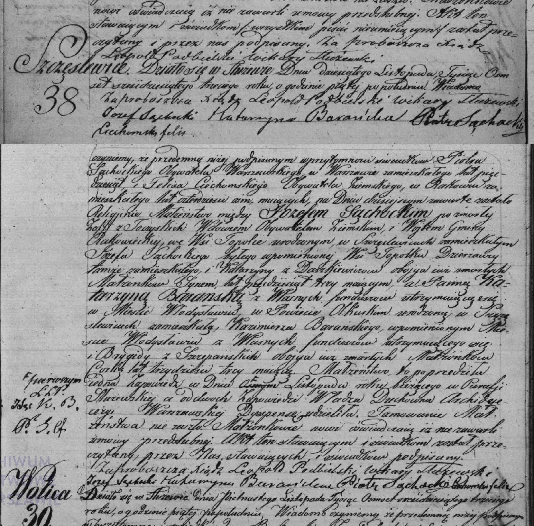 | sw.223393 | m | Józef | | | | | Sąchocki | | | | | Akt małżeństwa: Warszawa Wsz. Św. (obecn. m. Warszawa), 277/1889 [indeks na http://geneteka.genealodzy.pl/] http://metryki.genealodzy.pl/metryka.php?ar=8&zs=9264d&sy=313&kt=1&skan=277.jpg [podgląd] |