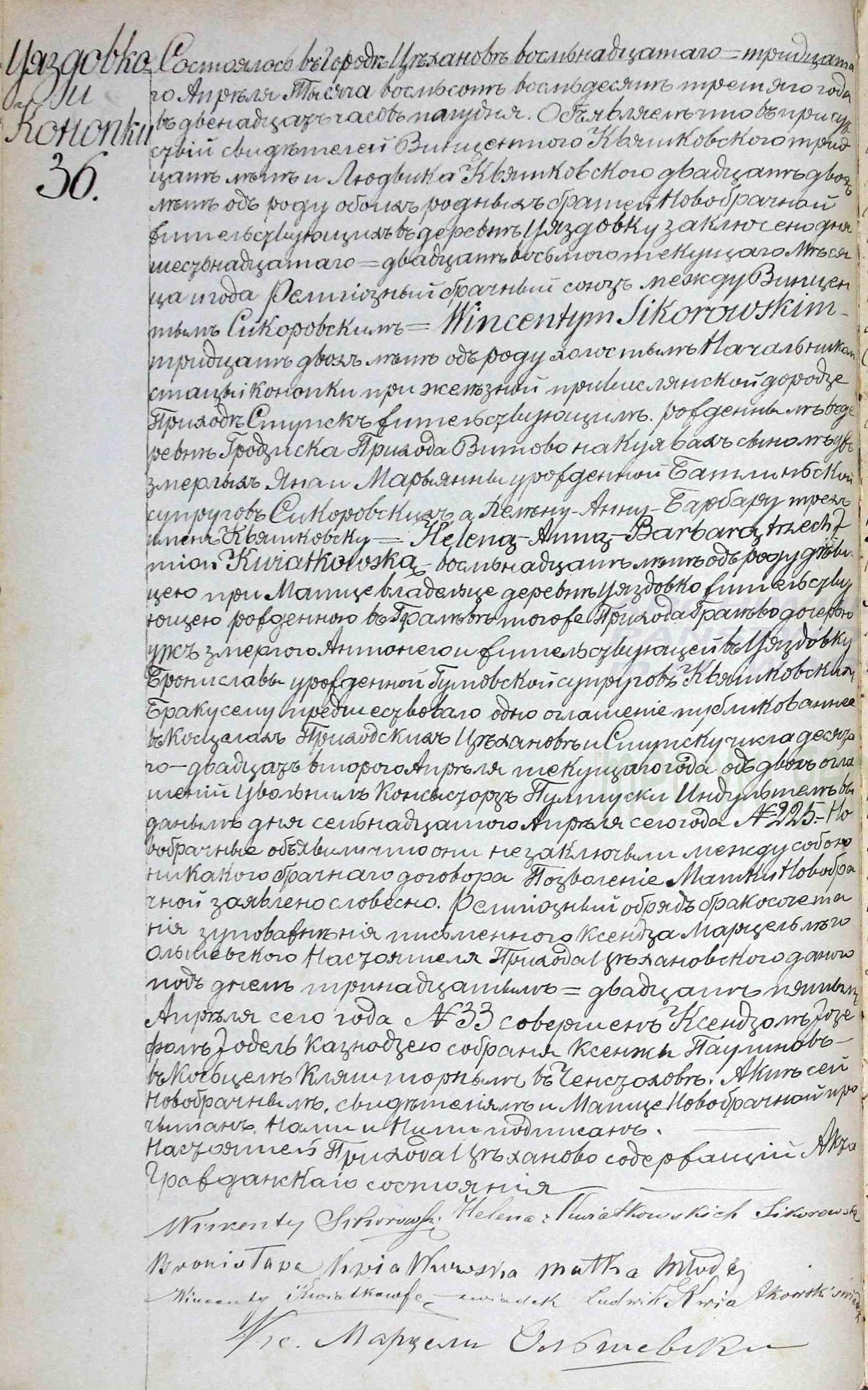 | sw.714108 | sw.714108 | sw.714109 (sw.223569) | sw.714110 (sw.223570) | Akt małżeństwa: Ciechanów (obecn. woj. mazow.), 59/1888 [indeks na http://geneteka.genealodzy.pl/] http://metryki.genealodzy.pl/metryka.php?ar=13&zs=0136d&sy=1888&kt=2&plik=058-059.jpg#zoom=1&x=0&y=0 [podgląd] |