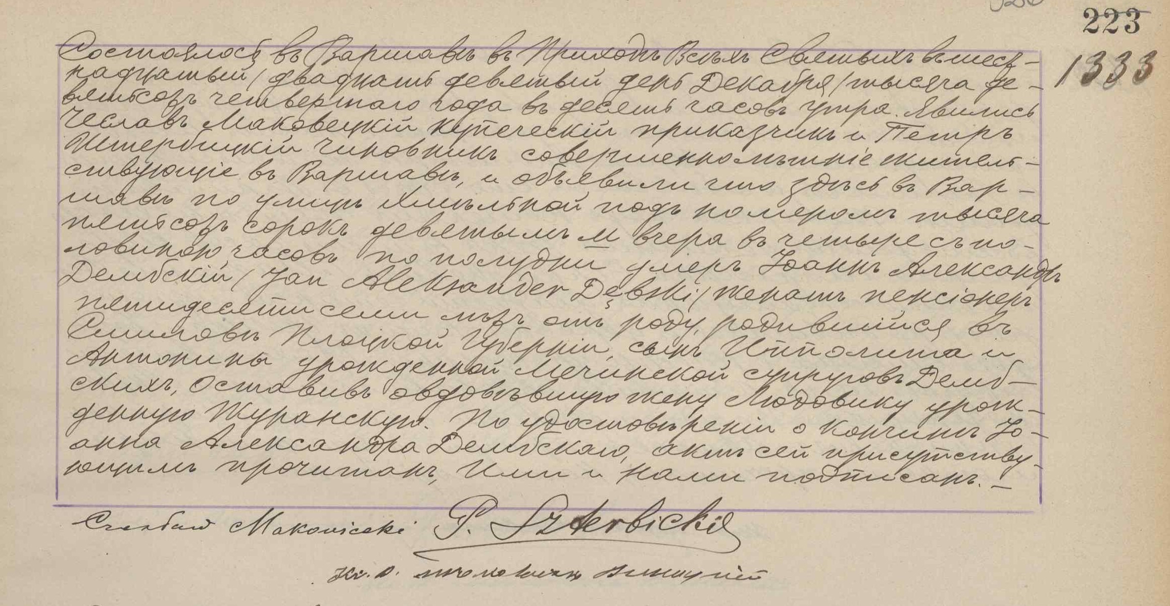 | sw.226653 | | | 1874 | | | | żeni się | Akt małżeństwa: Warszawa Wsz. Św. (obecn. m. Warszawa), 171/1901 [indeks na http://geneteka.genealodzy.pl/] http://metryki.genealodzy.pl/metryka.php?ar=8&zs=9264d&sy=325&kt=1&skan=171.jpg [podgląd] |