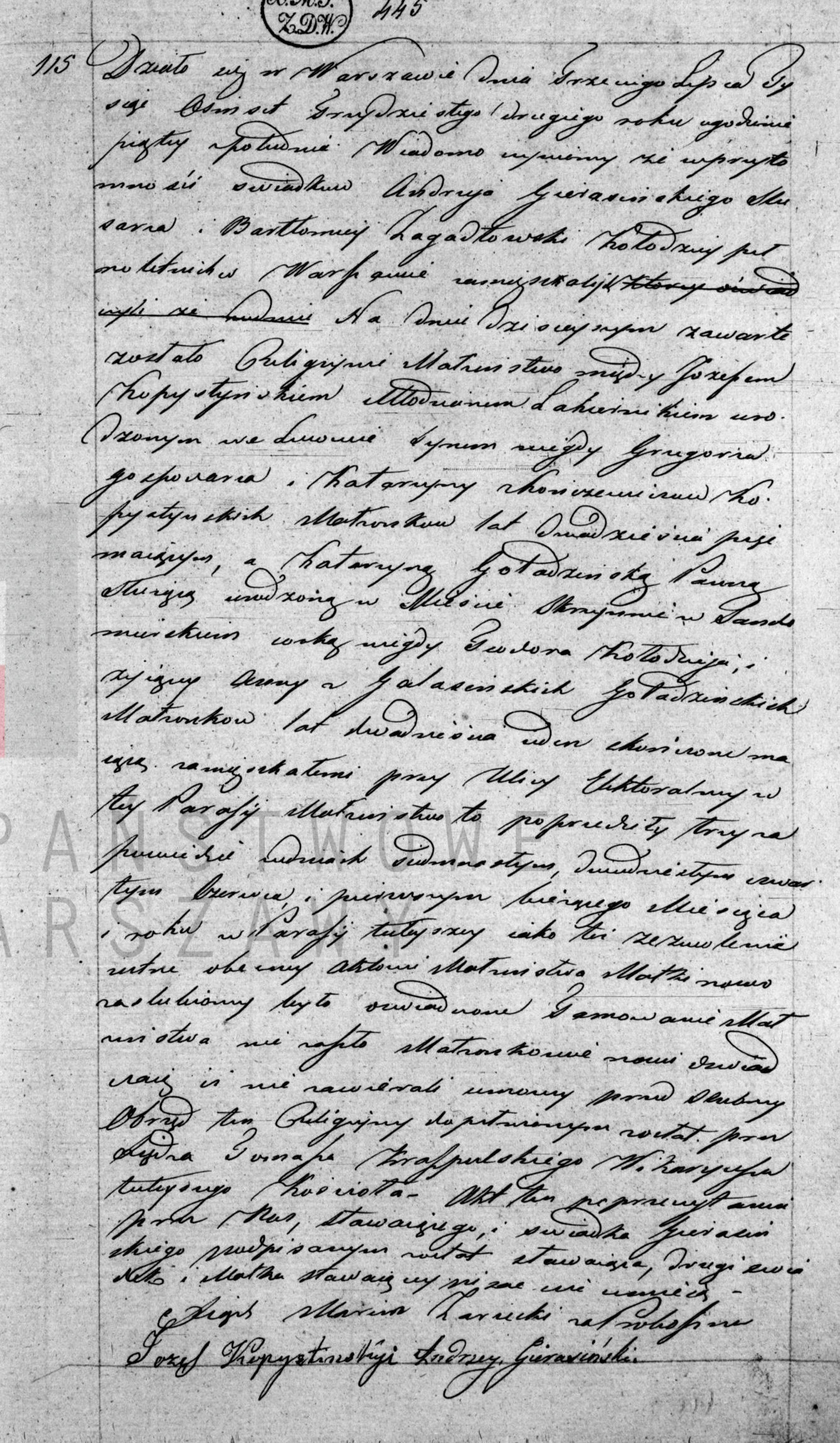 | sw.227339 | sw.227338 (sw.227338) | | | 1832 | | xpar.1443 | Akt małżeństwa: Warszawa św. Andrzej (obecn. m. Warszawa), rok 1832, nr aktu 115 [indeks na http://geneteka.genealodzy.pl/] [podgląd] | | | Akt ślubu obecny w bazie Geneteka |