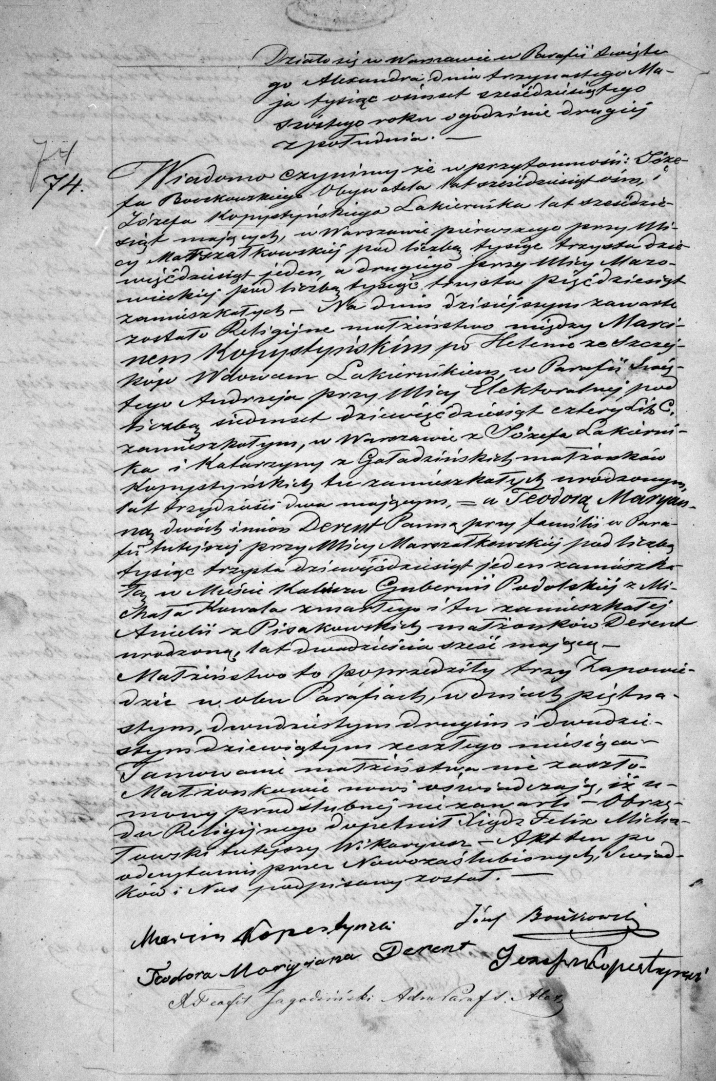 | sw.1024090 | sw.1098957 | sw.1098958 (sw.227338) | sw.1098959 (sw.227339) | Akt małżeństwa: Warszawa św. Aleksander (obecn. m. Warszawa), I-74/1866 [indeks na http://geneteka.genealodzy.pl/] http://metryki.genealodzy.pl/metryki.php?op=kt&ar=8&zs=9214d&sy=306&kt=5 [podgląd] |