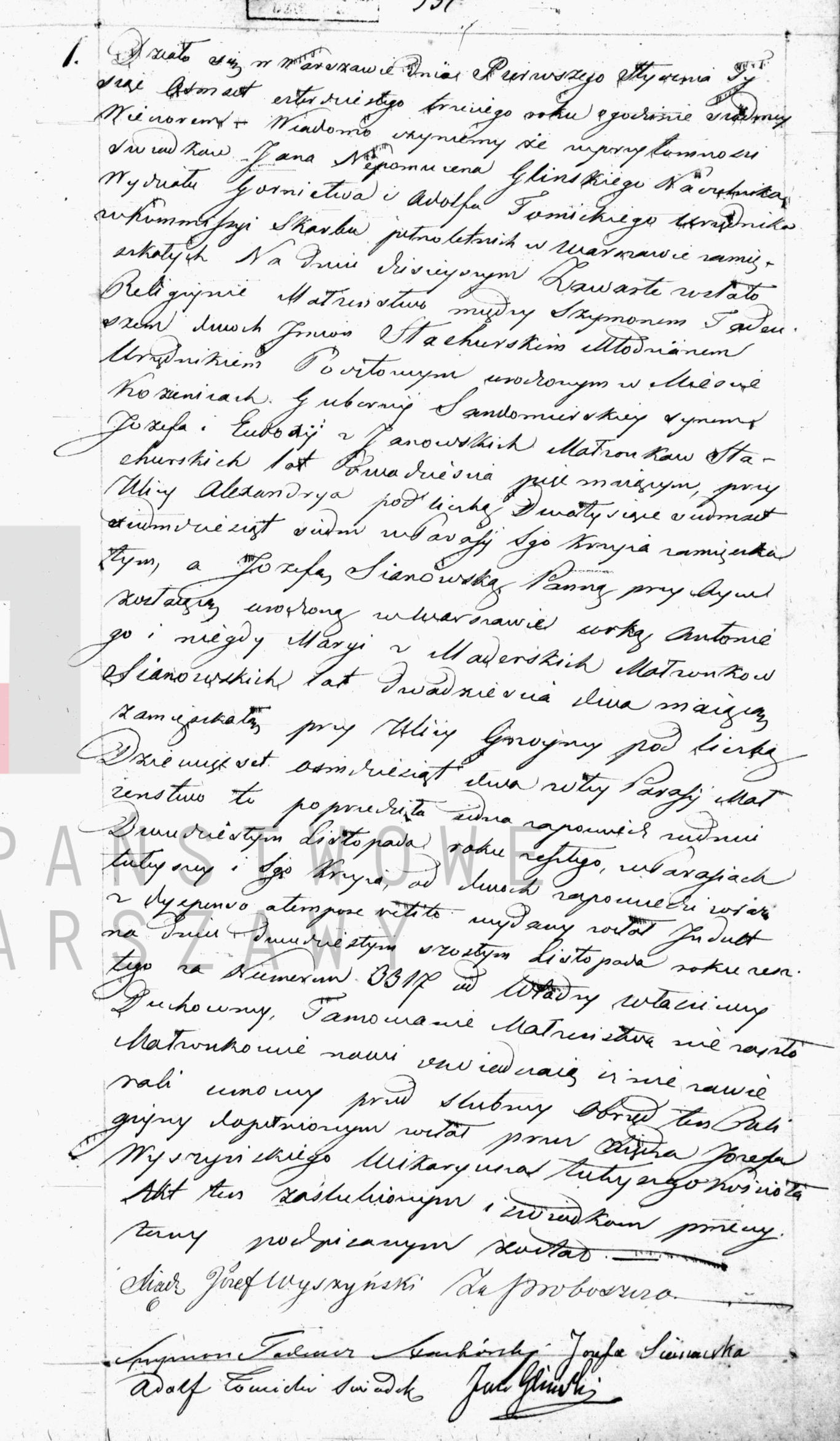 | sw.227796 | sw.158584 (sw.158584) | sw.158585 (sw.158585) | Akt małżeństwa: Warszawa św. Andrzej (obecn. m. Warszawa), 1/1843 [indeks na http://geneteka.genealodzy.pl/] http://metryki.genealodzy.pl/metryki.php?op=kt&ar=1&zs=0159d&sy=1843&kt=2 [podgląd] |