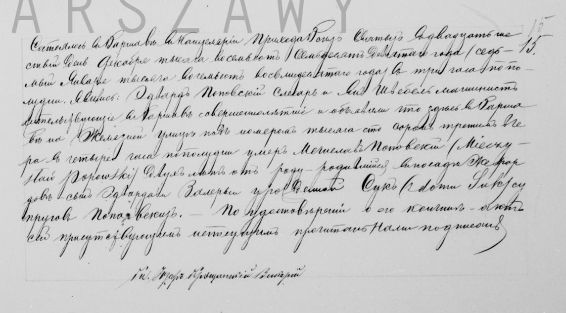 | sw.227871 | | | 1880 | | | | rodzi mu się dziecko | Akt małżeństwa: Warszawa Przemienienie Pańskie (obecn. m. Warszawa), 68/1888 [indeks na http://geneteka.genealodzy.pl/] http://metryki.genealodzy.pl/metryki.php?op=kt&ar=1&zs=1216d&sy=1888&kt=2 [podgląd] |
