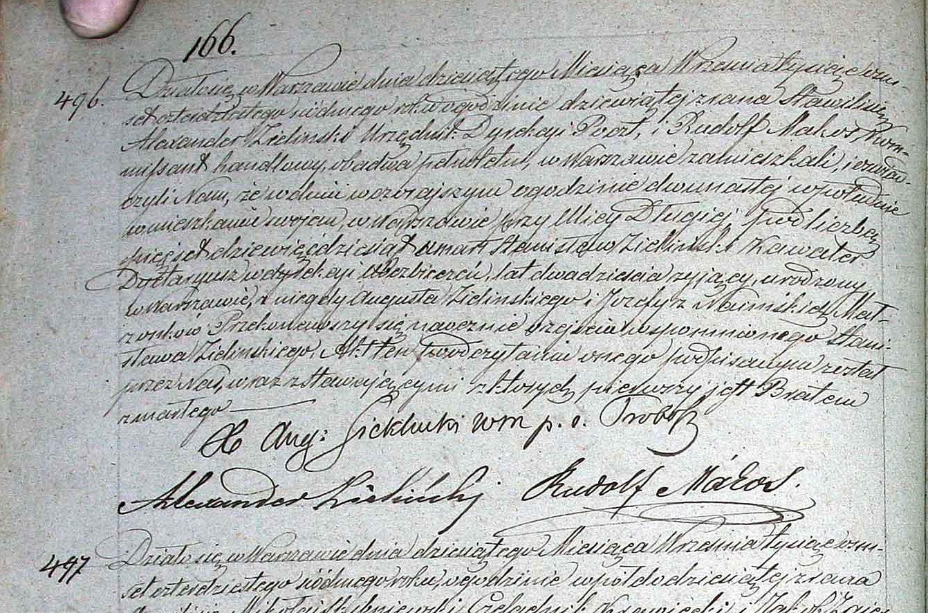 | sw.229988 | | | 1824 | | | | żeni się | Akt małżeństwa: Warszawa św. Andrzej (obecn. m. Warszawa), 104/1837 [indeks na http://geneteka.genealodzy.pl/] http://metryki.genealodzy.pl/metryki.php?op=kt&ar=1&zs=0159d&sy=1837&kt=2 [podgląd] |