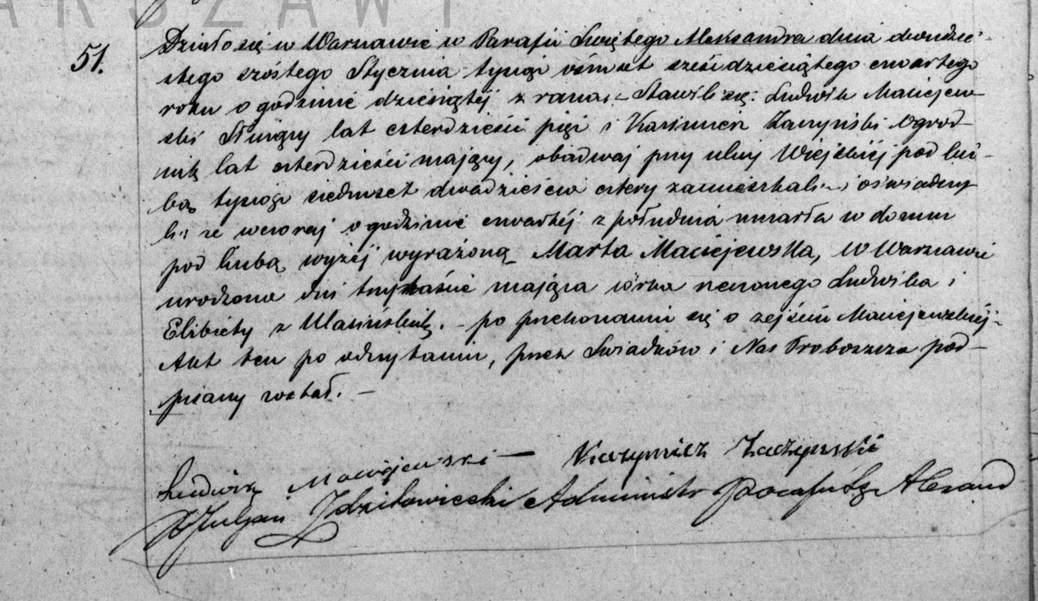 | sw.230214 | f | Elżbieta | | | | | Ulasiński | | | | | Akt małżeństwa: Warszawa św. Aleksander (obecn. m. Warszawa), 218/1892 [indeks na http://geneteka.genealodzy.pl/] http://metryki.genealodzy.pl/metryki.php?op=kt&ar=1&zs=0162d&sy=1892b&kt=2 [podgląd] |