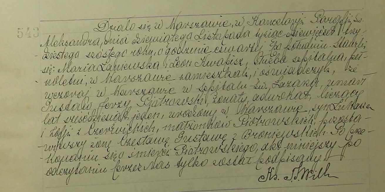 | sw.230291 | | | 1909 | | | | żeni się | Akt małżeństwa: Warszawa Wsz. Św. (obecn. m. Warszawa), 211/1909 [indeks na http://geneteka.genealodzy.pl/] http://metryki.genealodzy.pl/metryka.php?ar=8&zs=9264d&sy=333&kt=1&skan=211.jpg [podgląd] |