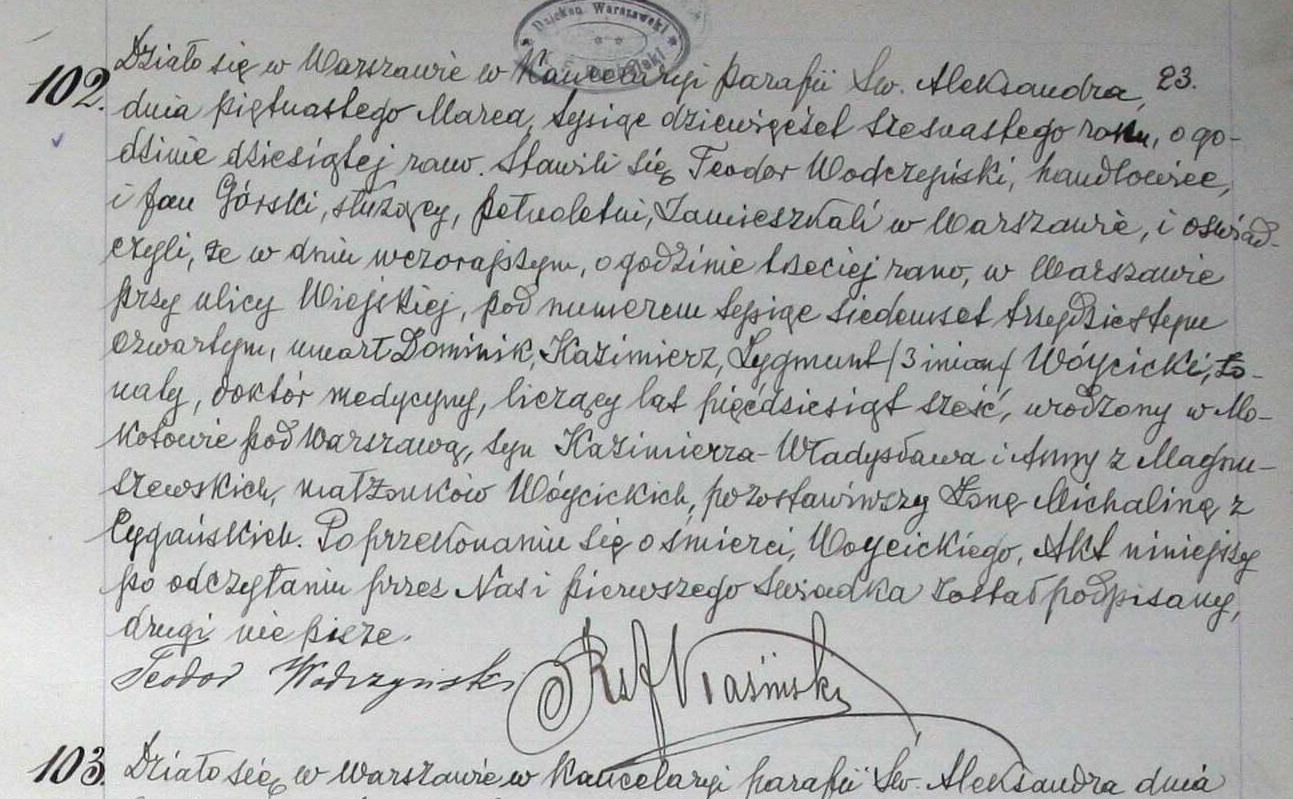 | sw.231931 | sw.231932 (16.330.657) | sw.231933 (16.330.656) | Akt małżeństwa: Warszawa św. Aleksander (obecn. m. Warszawa), 355/1896 [indeks na http://geneteka.genealodzy.pl/] http://metryki.genealodzy.pl/metryki.php?op=kt&ar=1&zs=0162d&sy=1896b&kt=2 [podgląd] |
