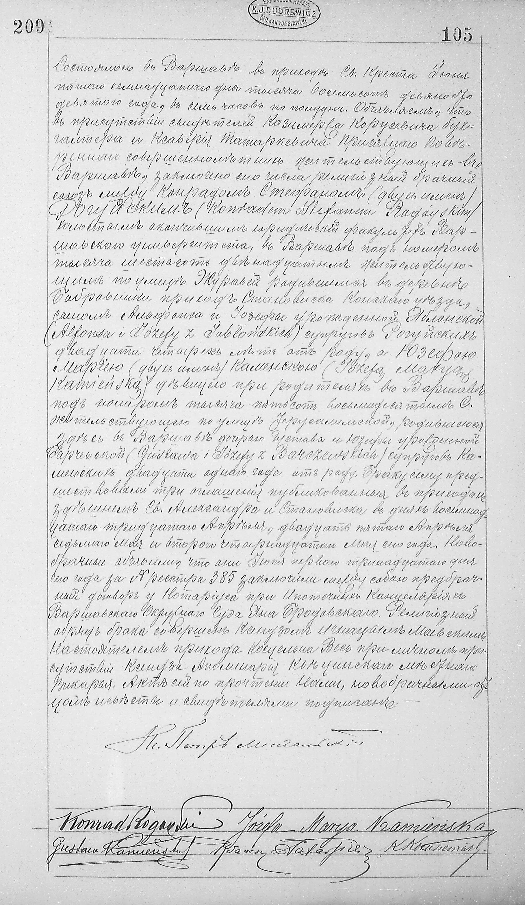 | psb.10737.6 | sw.265342 | sw.265343 (sw.232028) | sw.265344 (sw.232029) | Akt małżeństwa: Warszawa św. Krzyż (obecn. m. Warszawa), 209/1899 [indeks na http://geneteka.genealodzy.pl/] http://metryki.genealodzy.pl/metryki.php?op=kt&ar=1&zs=0158d&sy=1899b&kt=2 [podgląd] |