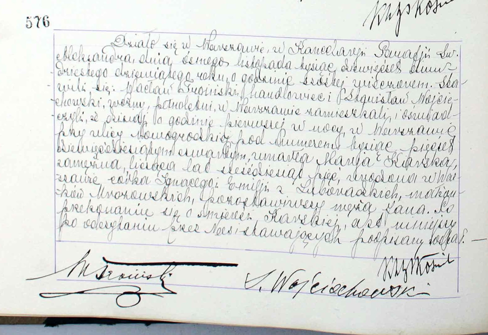 | sw.232470 | sw.171259 (sw.171259) | sw.171260 (sw.171260) | Akt małżeństwa: Warszawa św. Aleksander (obecn. m. Warszawa), 247/1887 [indeks na http://geneteka.genealodzy.pl/] http://metryki.genealodzy.pl/metryki.php?op=kt&ar=1&zs=0162d&sy=1887&kt=2 [podgląd] |