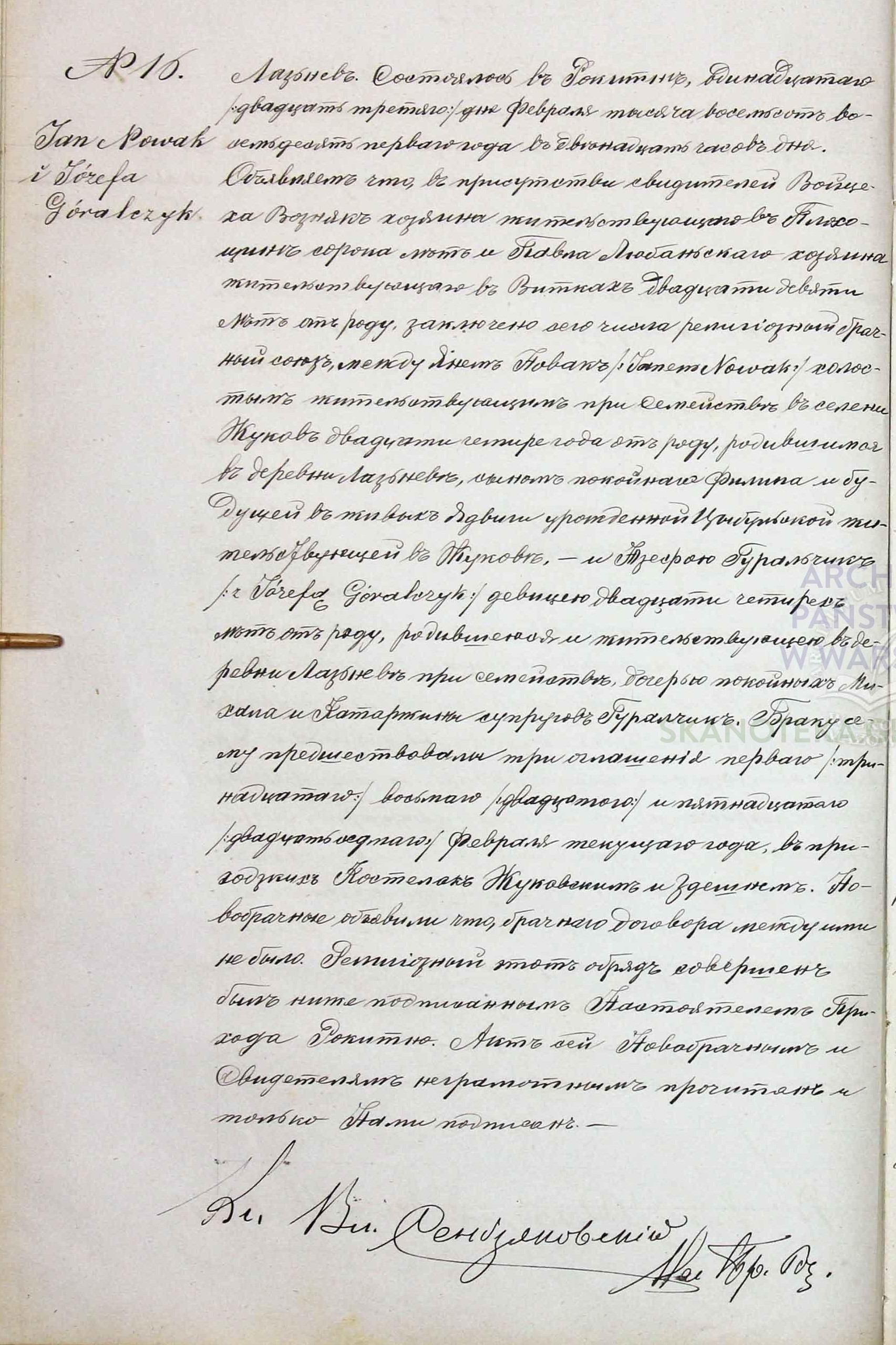 | sw.233175 | sw.233175 | sw.233176 (sw.233176) | sw.233177 (sw.233177) | Akt małżeństwa: Rokitno (obecn. woj. mazow.), 16/1881 [indeks na http://geneteka.genealodzy.pl/] http://metryki.genealodzy.pl/metryki.php?op=kt&ar=2&zs=0078d&sy=1881&kt=2 [podgląd] |