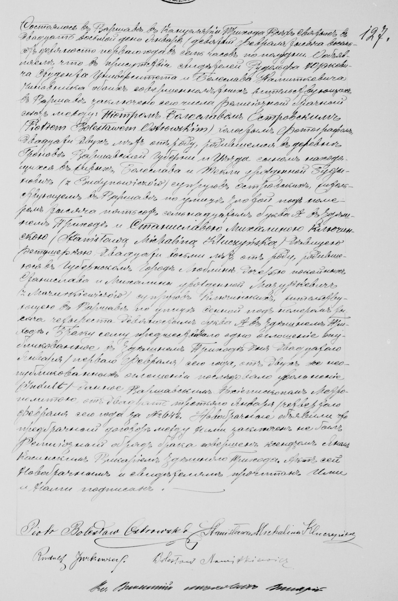 | sw.235667 | sw.235668 (sw.235160) | sw.235669 (sw.235161) | Akt małżeństwa: Warszawa Wsz. Św. (obecn. m. Warszawa), 127/1891 [indeks na http://geneteka.genealodzy.pl/] http://metryki.genealodzy.pl/metryka.php?ar=8&zs=9264d&sy=315&kt=1&skan=127.jpg [podgląd] |