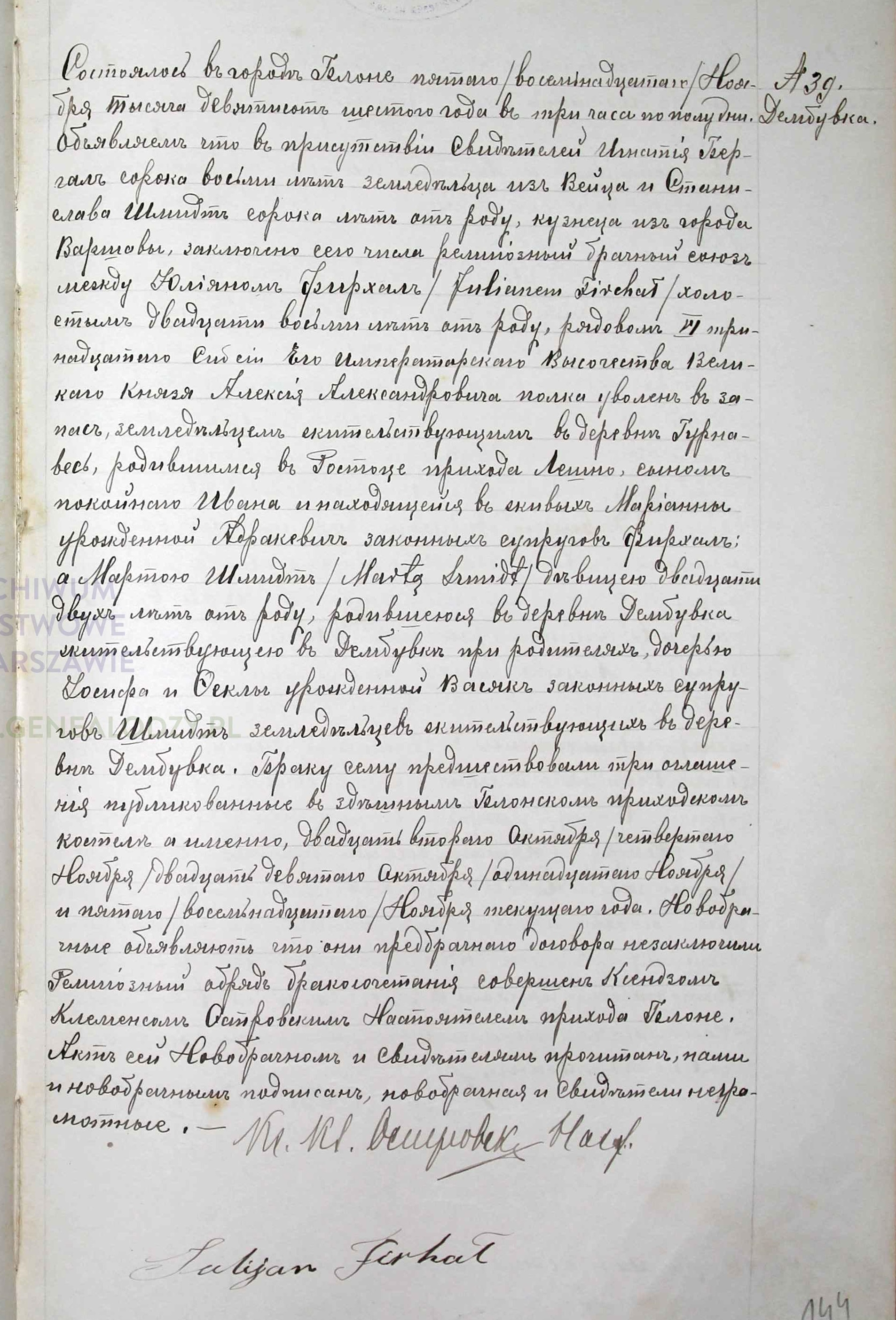 | sw.396643 | sw.382206 (sw.382206) | sw.382209 (sw.382209) | Akt małżeństwa: Leszno (obecn. woj. mazow.), 29/1890 [indeks na http://geneteka.genealodzy.pl/] http://metryki.genealodzy.pl/metryka.php?ar=2&zs=0071d&sy=166&kt=2&skan=28-29.jpg [podgląd] |