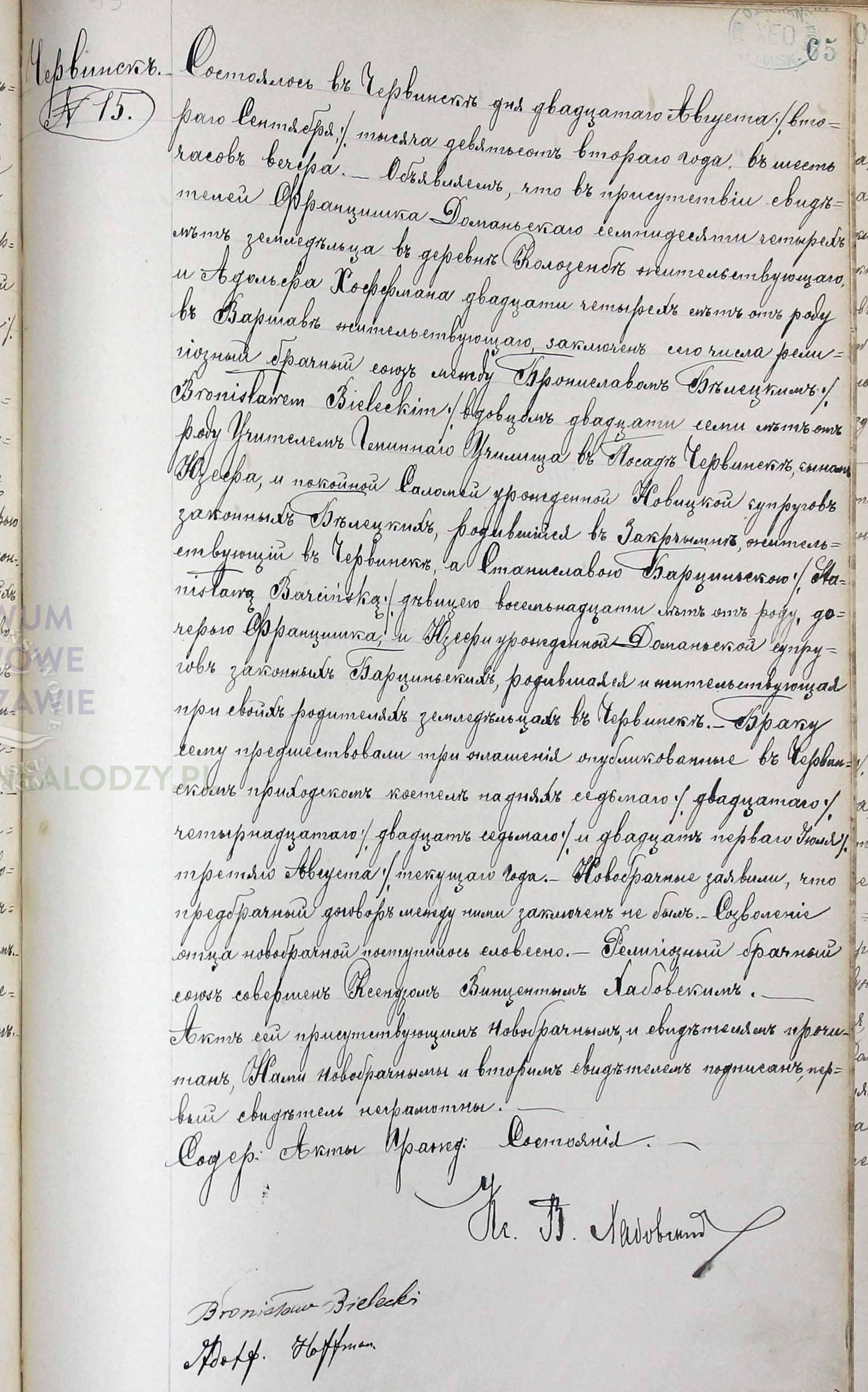 | sw.1169109 | sw.1169109 | sw.238255 (sw.238255) | sw.238256 (sw.238256) | Akt małżeństwa: Czerwińsk (obecn. woj. mazow.), 15/1902 [indeks na http://geneteka.genealodzy.pl/] http://metryki.genealodzy.pl/metryki.php?op=kt&ar=2&zs=0488d&sy=1902&kt=2 [podgląd] |