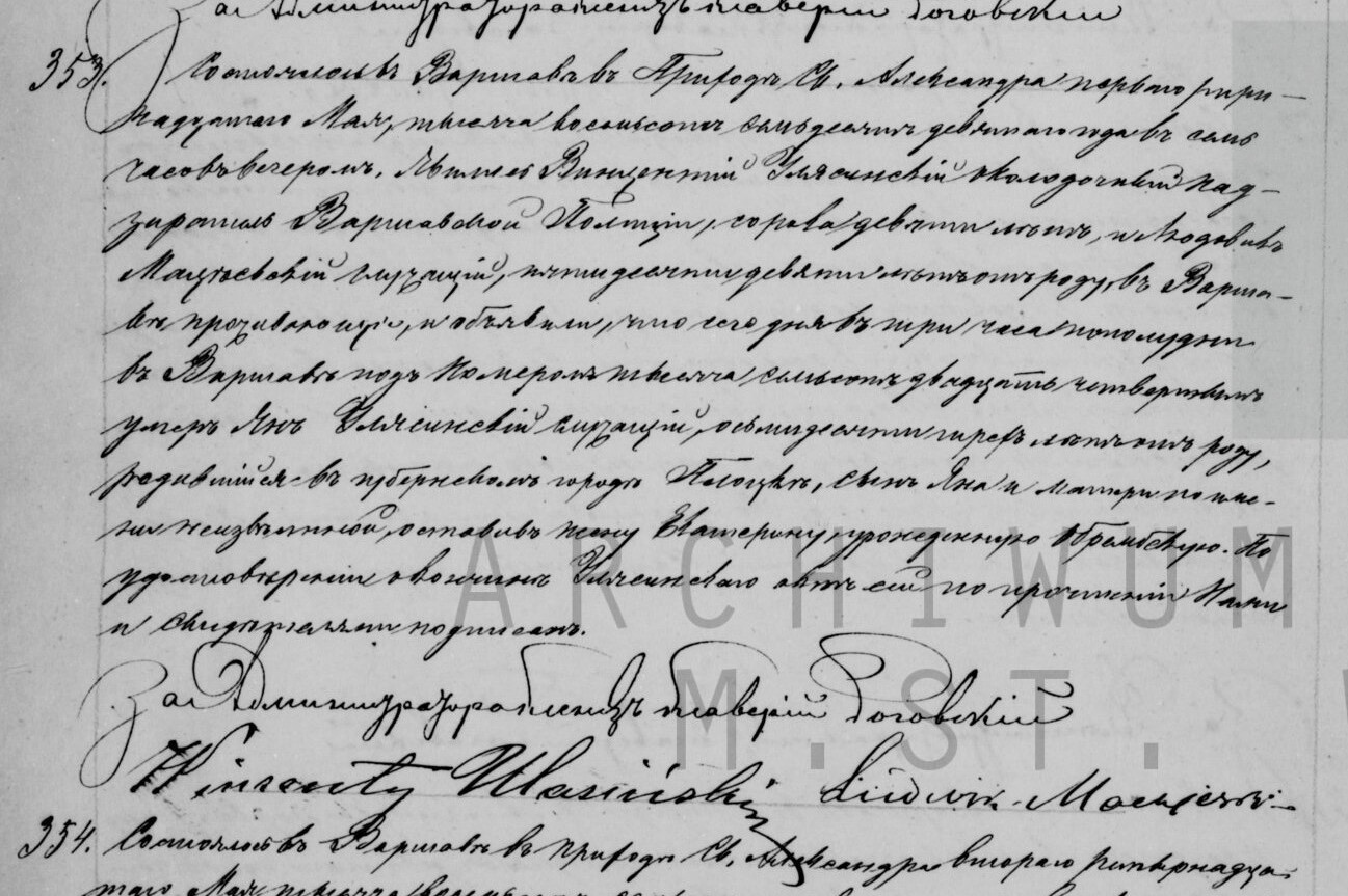 | sw.238588 | | | 1828 | | | | żeni się | Akt małżeństwa: Warszawa św. Aleksander (obecn. m. Warszawa), 40/1863 [indeks na http://geneteka.genealodzy.pl/] http://metryki.genealodzy.pl/metryki.php?op=kt&ar=8&zs=9214d&sy=306&kt=2 [podgląd] |