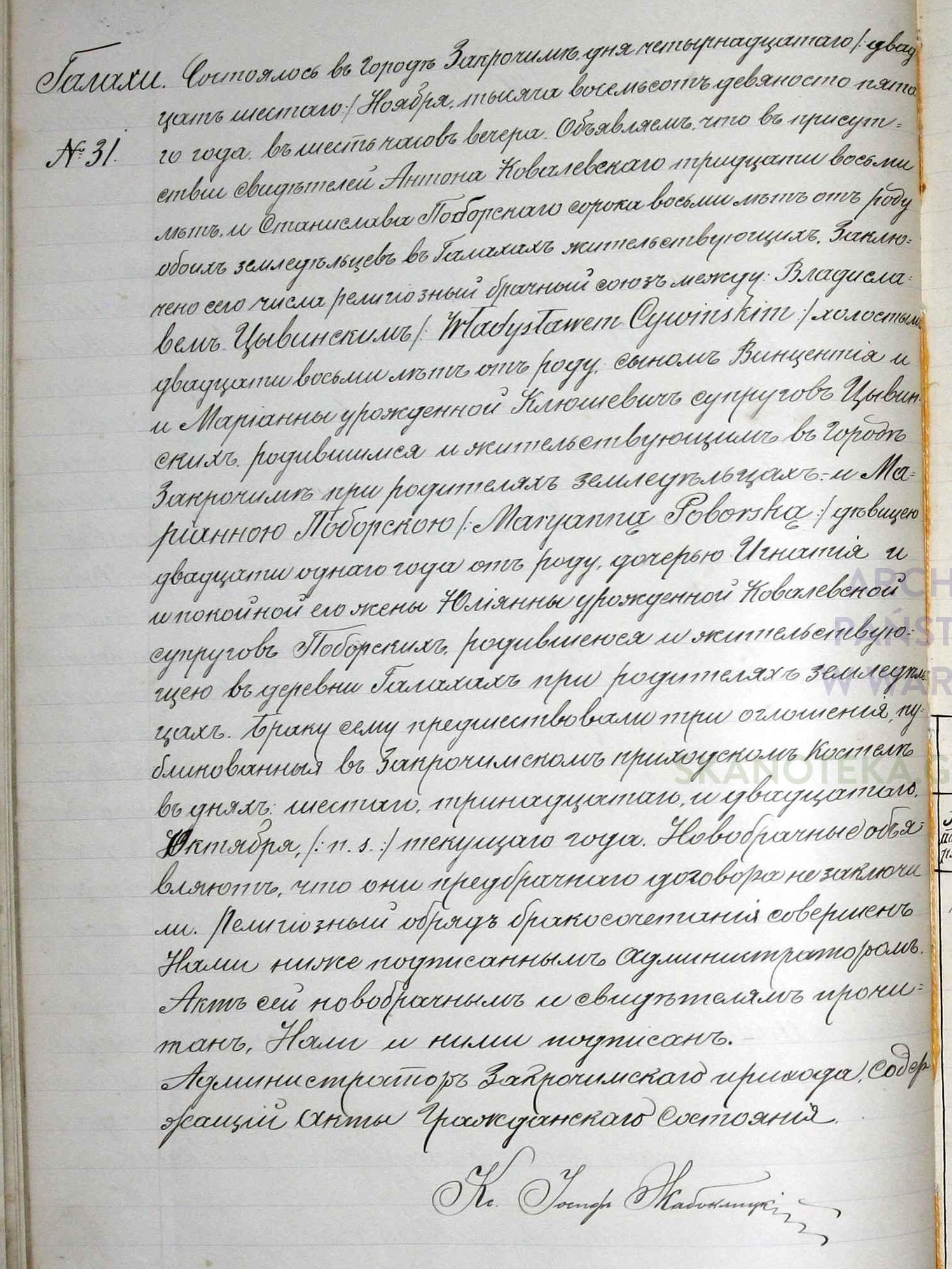 | sw.239602 | sw.239672 | sw.239021 (sw.239021) | sw.239022 (sw.239022) | Akt małżeństwa: Zakroczym (obecn. woj. mazow.), 6/1898 [indeks na http://geneteka.genealodzy.pl/] http://metryki.genealodzy.pl/metryki.php?op=kt&ar=2&zs=0546d&sy=1898&kt=2 [podgląd] |