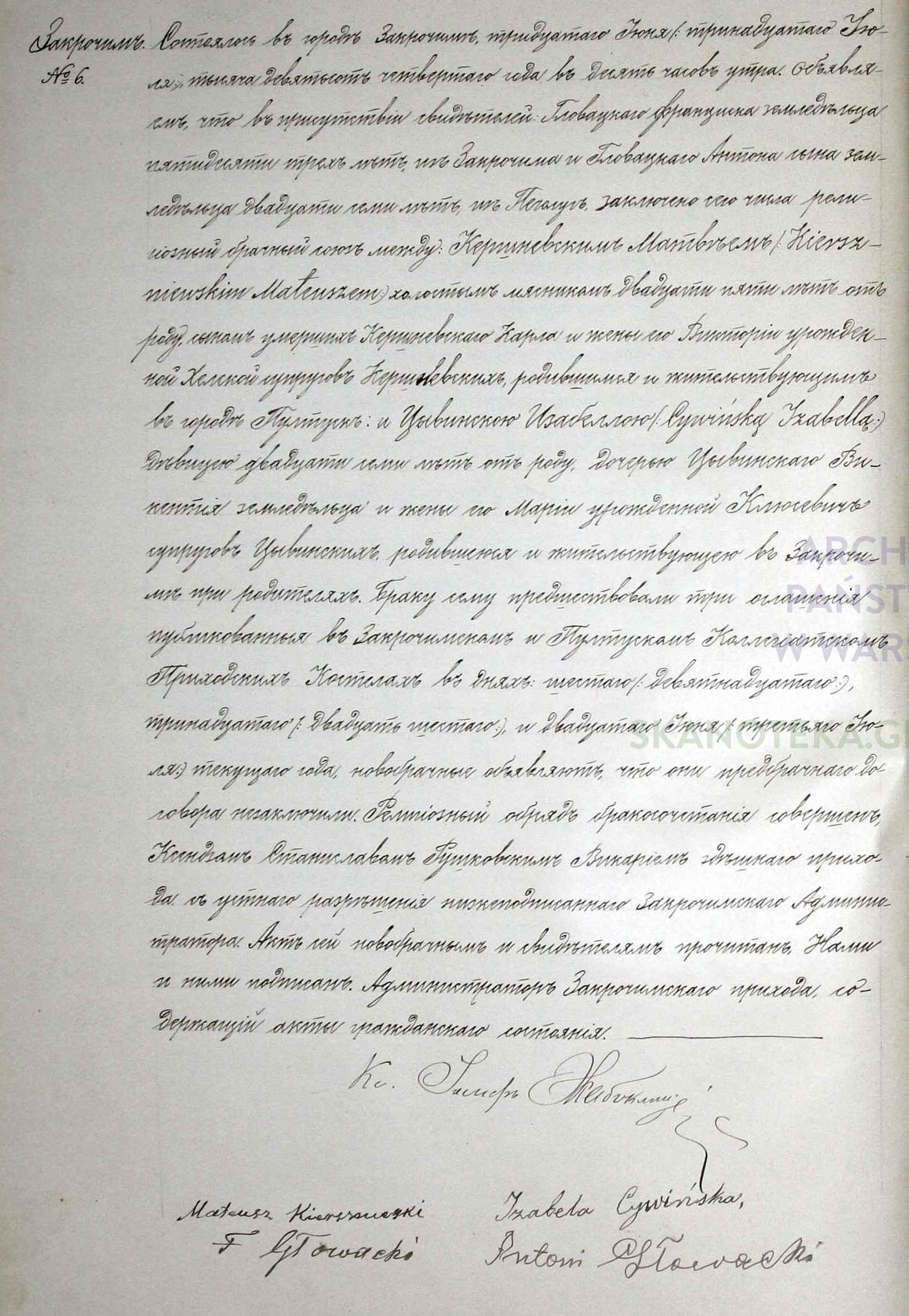 | sw.239505 | sw.239505 | sw.239021 (sw.239021) | sw.239022 (sw.239022) | Akt małżeństwa: Zakroczym (obecn. woj. mazow.), 31/1895 [indeks na http://geneteka.genealodzy.pl/] http://metryki.genealodzy.pl/metryki.php?op=kt&ar=2&zs=0546d&sy=1895&kt=2 [podgląd] |