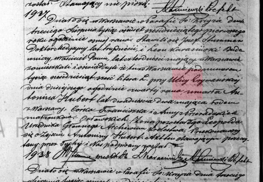 | genetekau.4222208 | | | 1838 | | | Akt urodzenia: Warszawa św. Jan (obecn. m. Warszawa), 441/1854 http://metryki.genealodzy.pl/metryka.php?ar=8&zs=9233d&sy=140&kt=1&skan=439-442.jpg | | Akt chrztu obecny w bazie Geneteka |