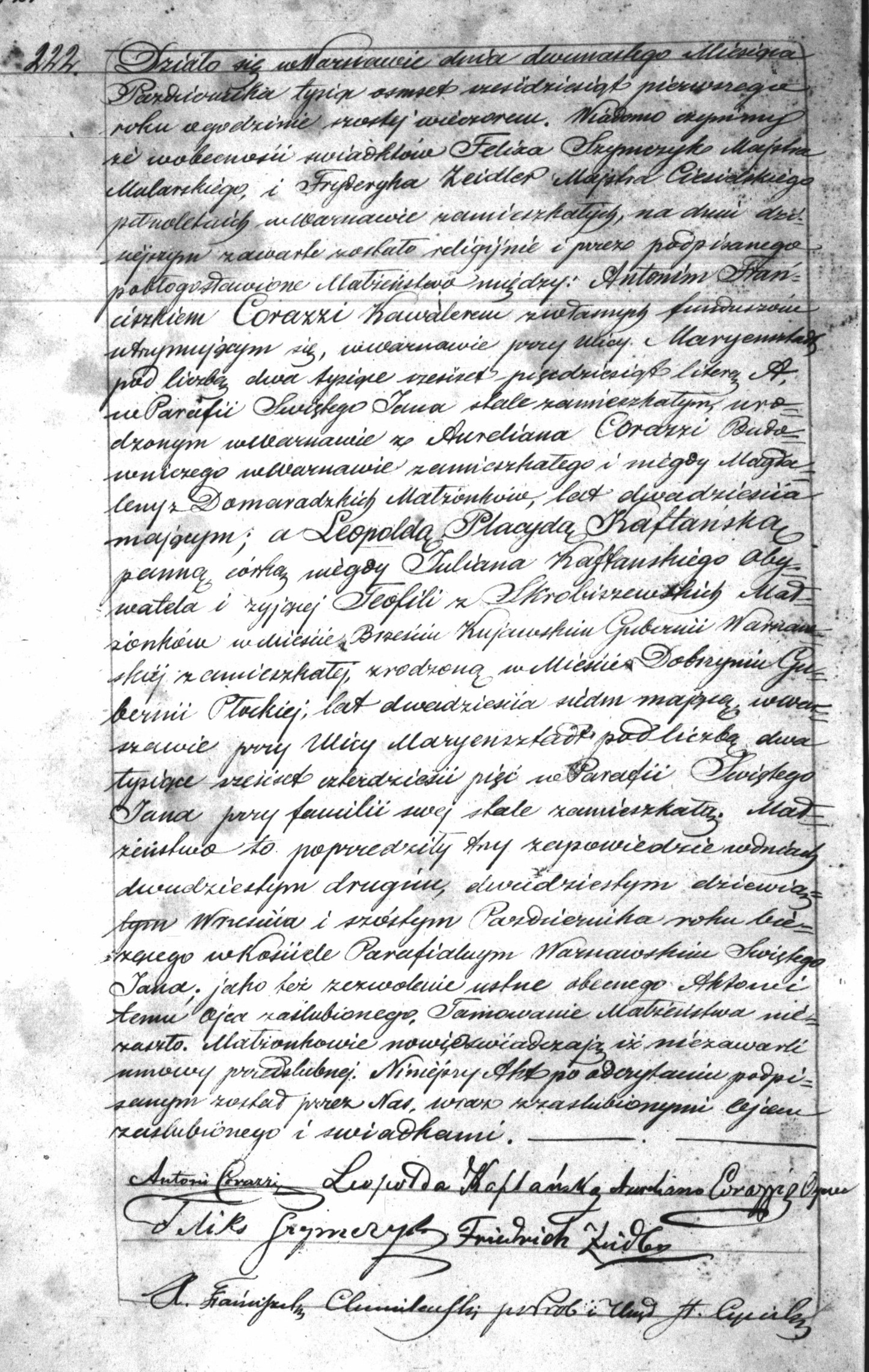 | sw.240343 | sw.240340 (sw.240340) | Akt małżeństwa: Warszawa św. Jan (obecn. m. Warszawa), 108/1835 [indeks na http://geneteka.genealodzy.pl/] http://metryki.genealodzy.pl/metryka.php?ar=8&zs=9233d&sy=317&kt=5&skan=108-109.jpg [podgląd] | ||||||||