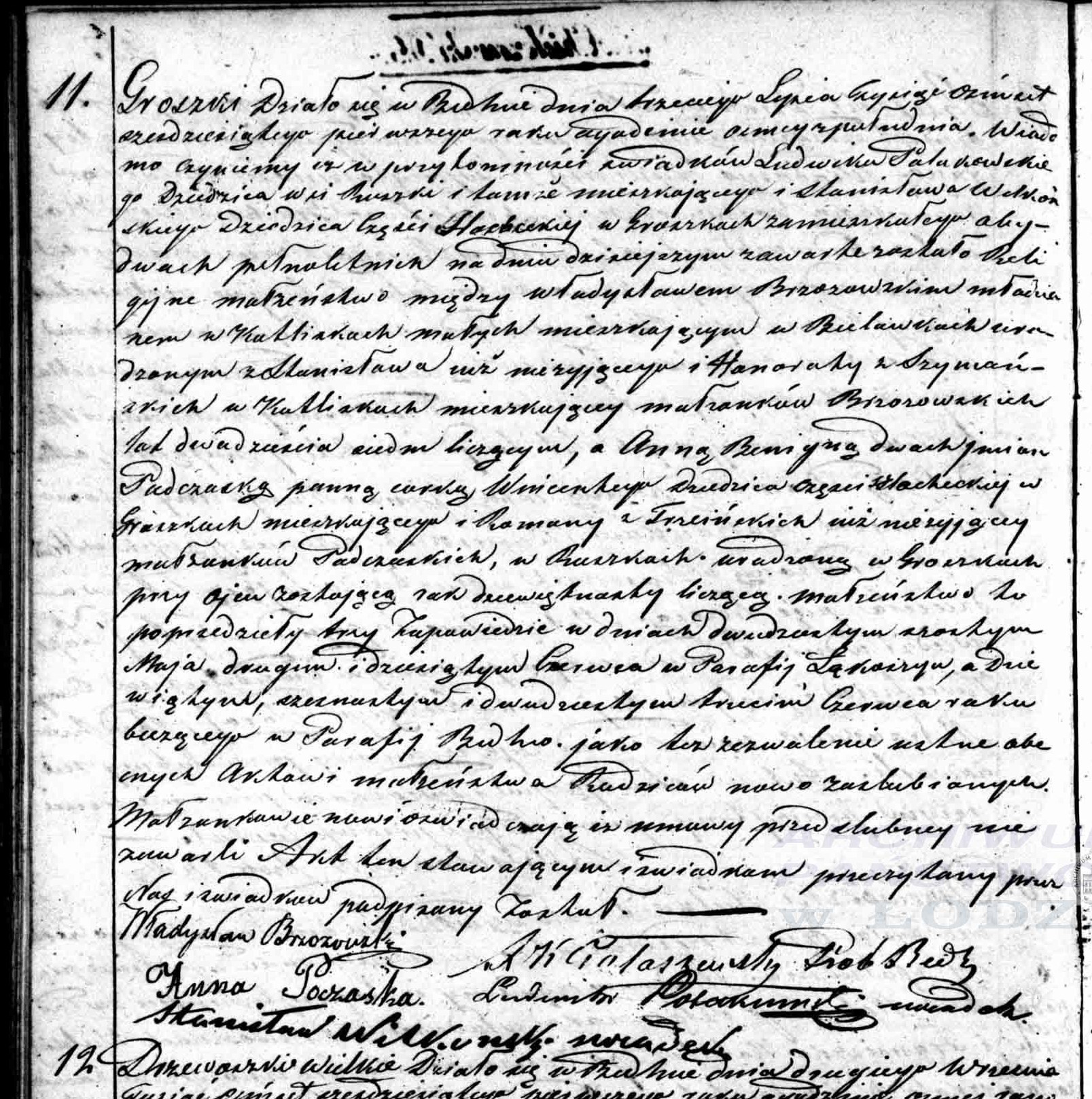 | sw.241170 | sw.241169 (sw.241169) | 5 | feb | 1826 | xpar.326 | Akt małżeństwa: Kutno-Łąkoszyn (obecn. woj. łódz.), rok 1826, nr aktu 3 [indeks na http://geneteka.genealodzy.pl/] http://metryki.genealodzy.pl/metryki.php?op=kt&ar=3&zs=1556d&sy=1826&kt=2 [podgląd] | Akt ślubu obecny w bazie Geneteka |