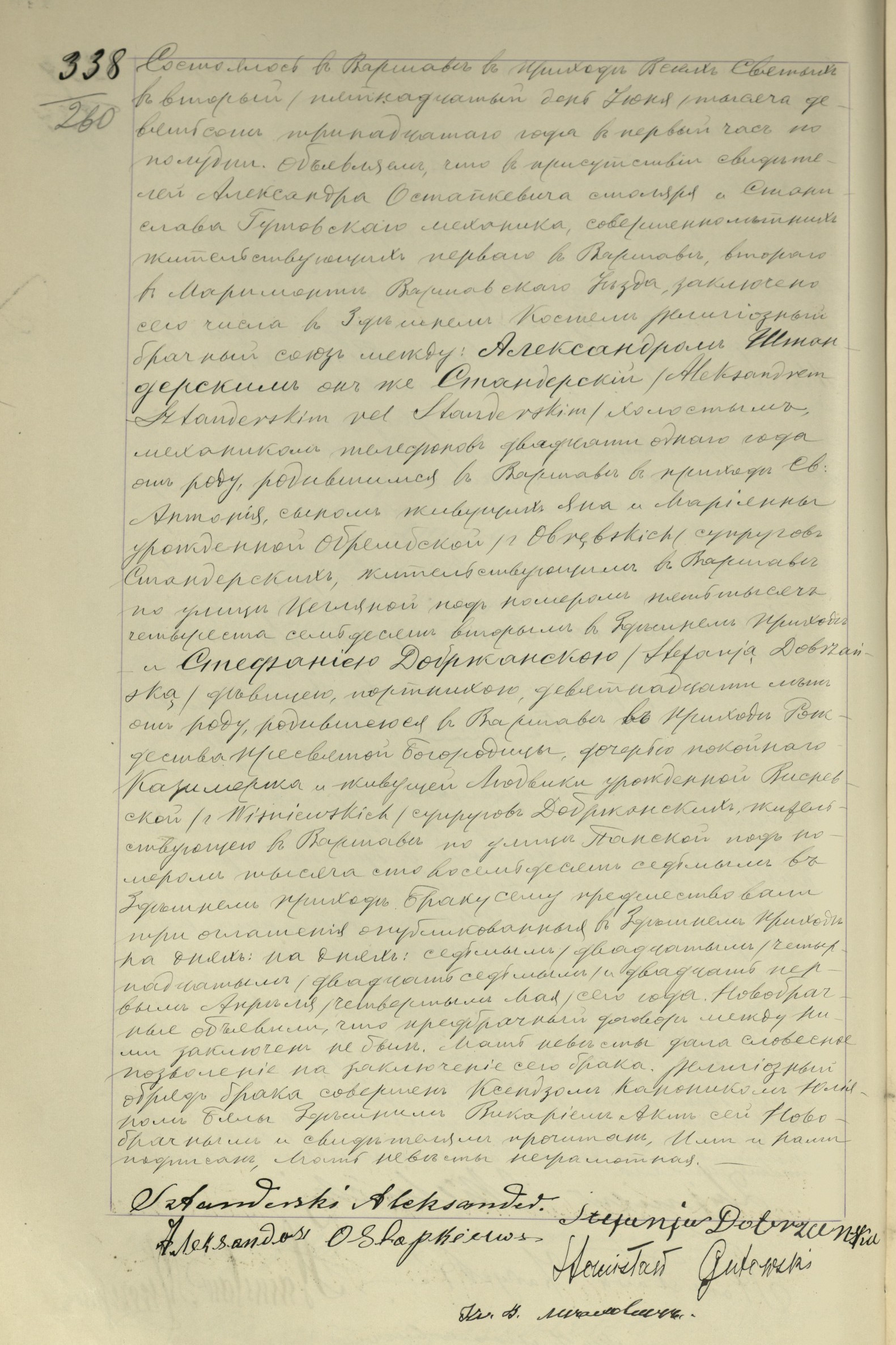 | sw.242173 | sw.242173 | sw.241651 (sw.241651) | sw.241652 (sw.241652) | Akt małżeństwa: Warszawa Wsz. Św. (obecn. m. Warszawa), 338/1913 [indeks na http://geneteka.genealodzy.pl/] http://metryki.genealodzy.pl/metryka.php?ar=8&zs=9264d&sy=337&kt=1&skan=338.jpg [podgląd] |