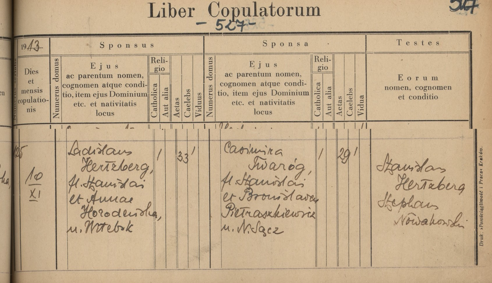 | sw.1303467 | sw.1303467 | sw.697734 (sw.242118) | sw.697735 (sw.697735) | Akt małżeństwa: Kraków WNMP (Mariacki) (obecn. woj. małop.), 125/1913 [indeks na http://geneteka.genealodzy.pl/] https://szukajwarchiwach.gov.pl/jednostka/-/jednostka/16302794 [podgląd] |