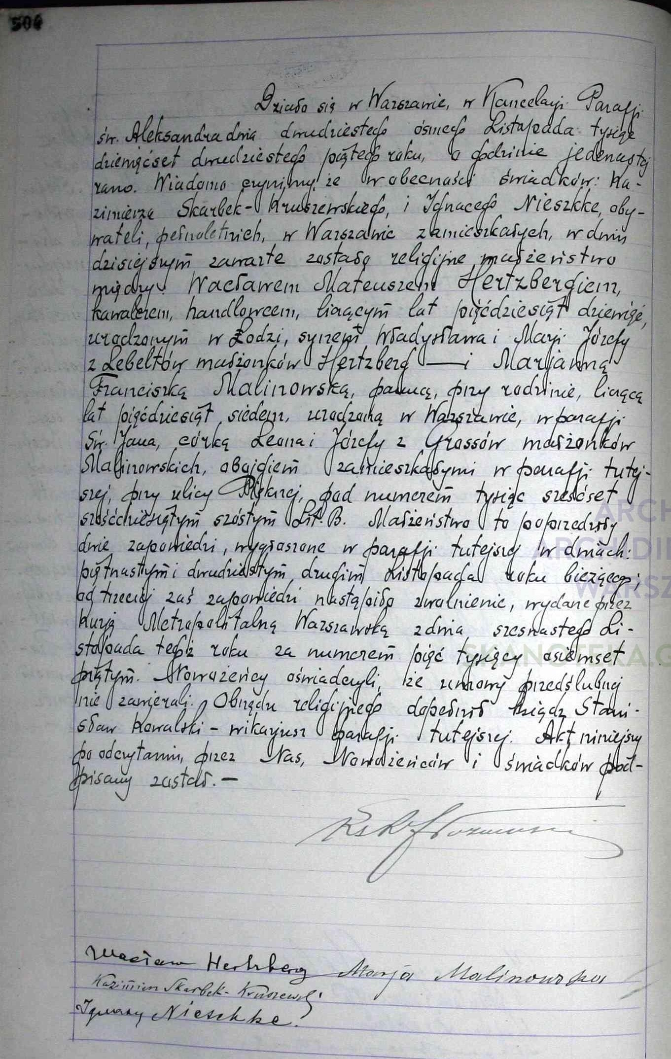 | sw.1025010 | sw.1103229 | sw.1103230 (sw.242119) | sw.1103231 (sw.242120) | Akt małżeństwa: Warszawa św. Aleksander (obecn. m. Warszawa), 504/1925 [indeks na http://geneteka.genealodzy.pl/] http://metryki.genealodzy.pl/metryki.php?op=kt&ar=8&zs=9214d&sy=341&kt=1 [podgląd] |
