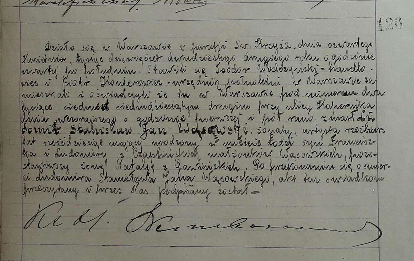 | sw.252948 | | | 1861 | | | | żeni się | Akt małżeństwa: Warszawa św. Aleksander (obecn. m. Warszawa), 327/1895 [indeks na http://geneteka.genealodzy.pl/] http://metryki.genealodzy.pl/metryki.php?op=kt&ar=8&zs=9214d&sy=314&kt=2 [podgląd] |
