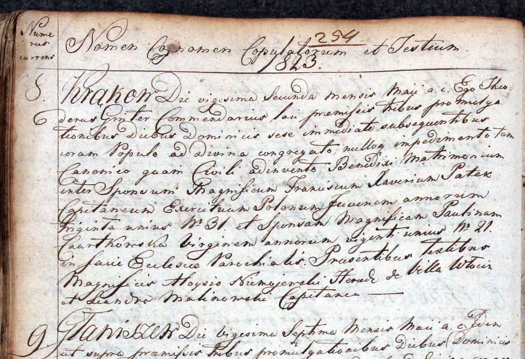 | sw.256939 | | | 1823 | | | | rodzi mu się dziecko | Akt małżeństwa: Warszawa św. Krzyż (obecn. m. Warszawa), 268/1861 [indeks na http://geneteka.genealodzy.pl/] http://metryki.genealodzy.pl/metryki.php?op=kt&ar=1&zs=0158d&sy=1861b&kt=2 [podgląd] |