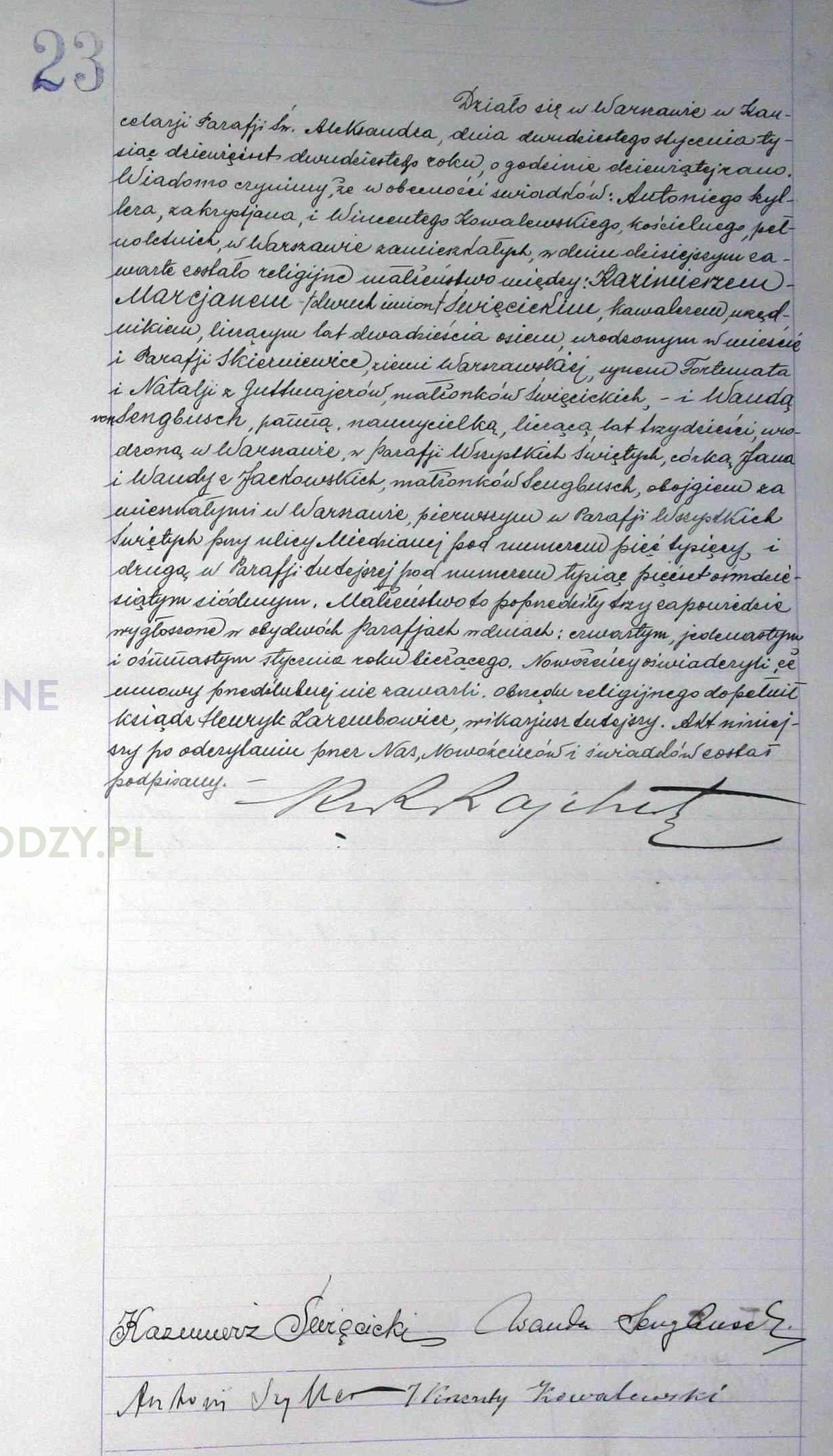 | sw.954085 | sw.954085 | sw.954086 (sw.657047) | sw.954087 (sw.257723) | Akt małżeństwa: Warszawa św. Aleksander (obecn. m. Warszawa), 23/1920 [indeks na http://geneteka.genealodzy.pl/] http://metryki.genealodzy.pl/metryki.php?op=kt&ar=8&zs=9214d&sy=336&kt=1 [podgląd] |