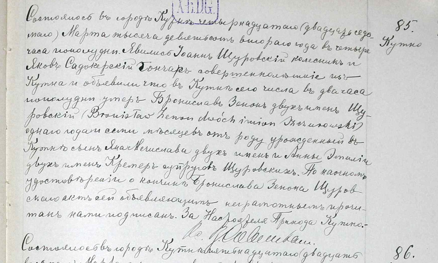 | sw.326009 | sw.326009 | sw.260927 (sw.260927) | sw.292659 (sw.292659) | Akt zgonu: Kutno (obecn. woj. łódz.), 85/1902 [indeks na http://geneteka.genealodzy.pl/] http://metryki.genealodzy.pl/metryka.php?ar=3&zs=1537d&sy=1902&kt=3&skan=082-087.jpg [podgląd] |