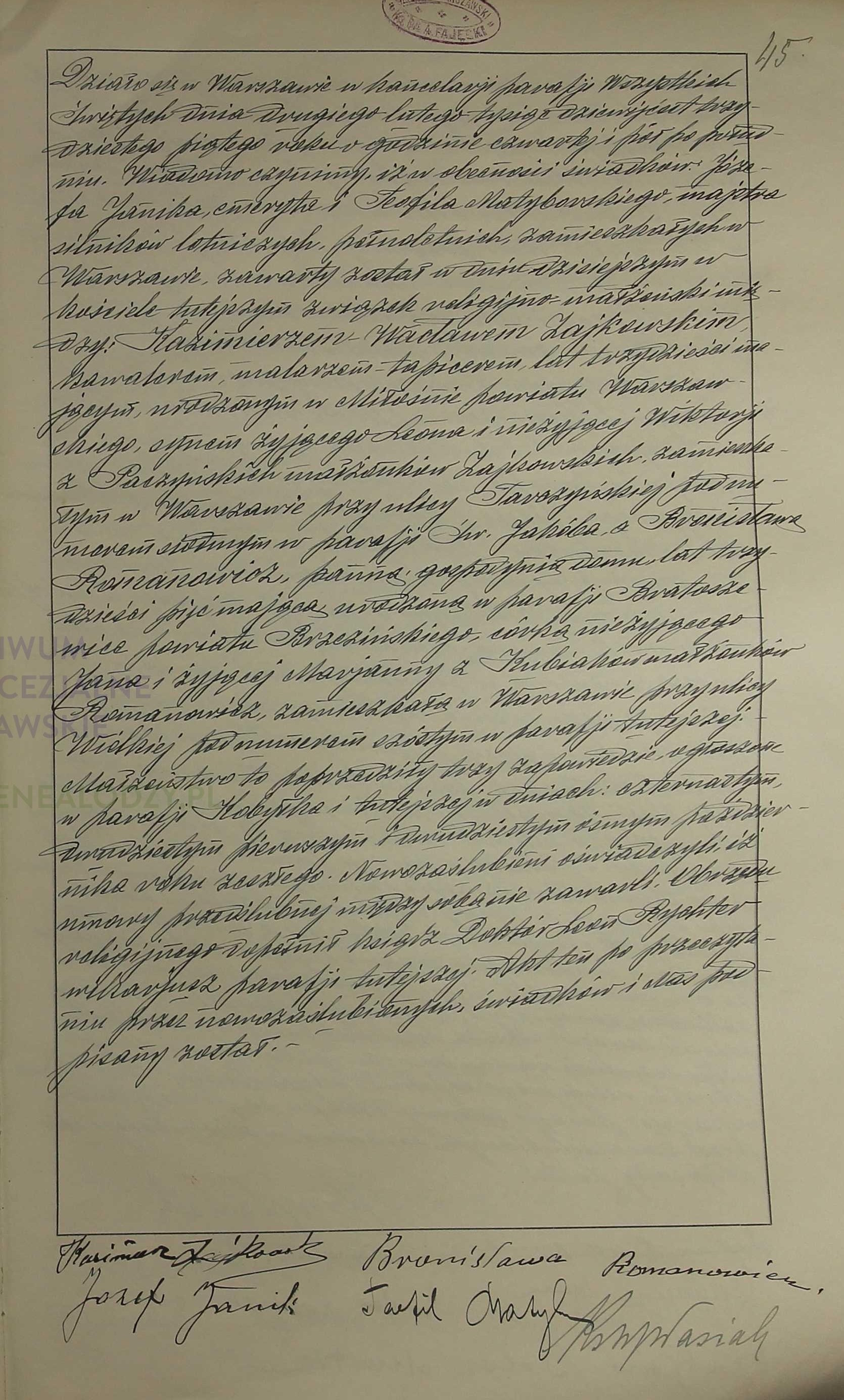 | sw.265687 | sw.265520 (sw.265520) | sw.265521 (sw.265521) | Akt małżeństwa: Warszawa Wsz. Św. (obecn. m. Warszawa), 160/1897 [indeks na http://geneteka.genealodzy.pl/] http://metryki.genealodzy.pl/metryka.php?ar=8&zs=9264d&sy=321&kt=1&skan=160.jpg [podgląd] |