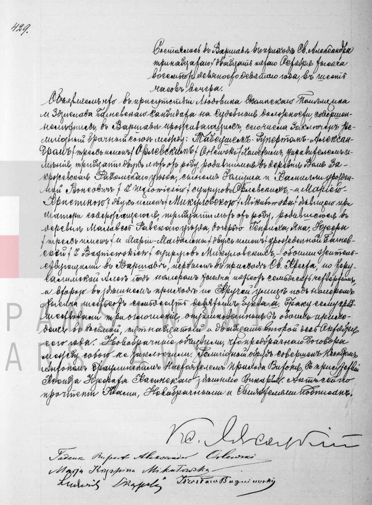 | sw.265692 | sw.265692 | sw.265693 (sw.265693) | sw.265694 (sw.265694) | Akt małżeństwa: Warszawa św. Aleksander (obecn. m. Warszawa), 429/1899 [indeks na http://geneteka.genealodzy.pl/] http://metryki.genealodzy.pl/metryki.php?op=kt&ar=1&zs=0162d&sy=1899b&kt=2 [podgląd] |