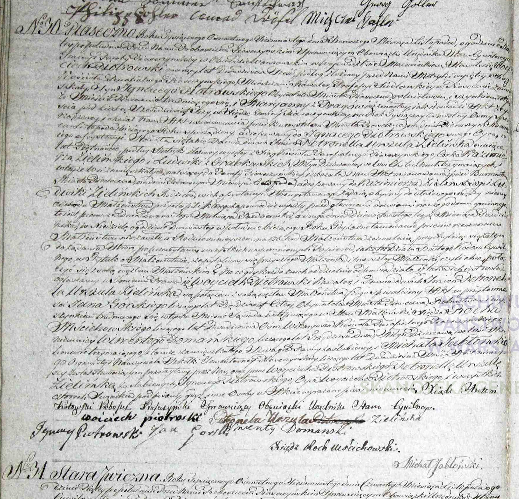 | sw.274352 | sw.292942 | sw.272016 (sw.272016) | sw.272017 (sw.272017) | Akt małżeństwa: Piaseczno (obecn. woj. mazow.), 30/1817 [indeks na http://geneteka.genealodzy.pl/] http://metryki.genealodzy.pl/metryka.php?ar=2&zs=1448d&sy=1817&kt=2&skan=30-33.jpg [podgląd] |