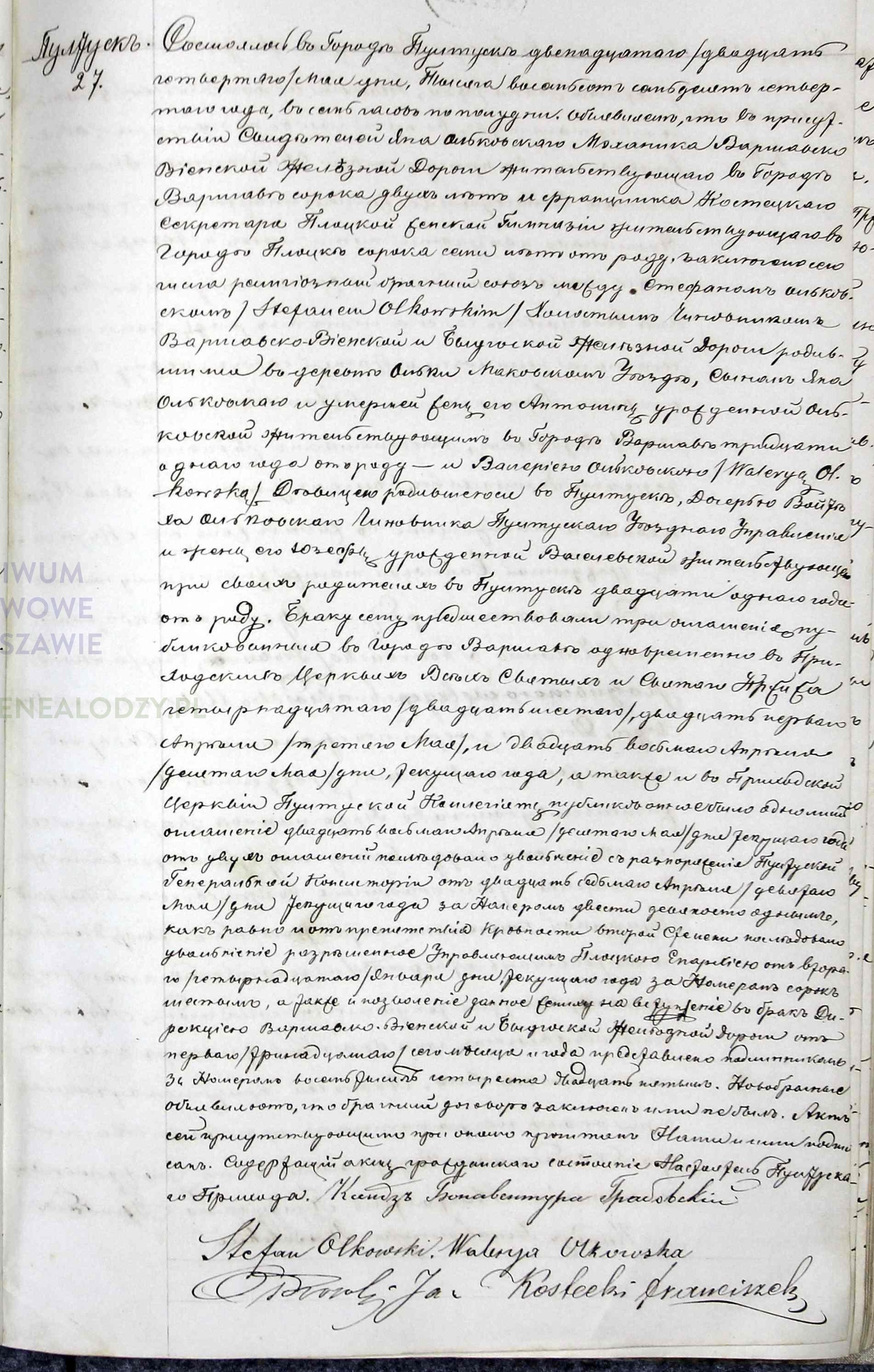 | sw.272322 | | | 1854 | | | | rodzi mu się dziecko | Akt małżeństwa: Pułtusk (obecn. woj. mazow.), 14/1878 [indeks na http://geneteka.genealodzy.pl/] http://metryki.genealodzy.pl/metryka.php?ar=6&zs=0005d&sy=1878&kt=2&skan=14-15.jpg [podgląd] |