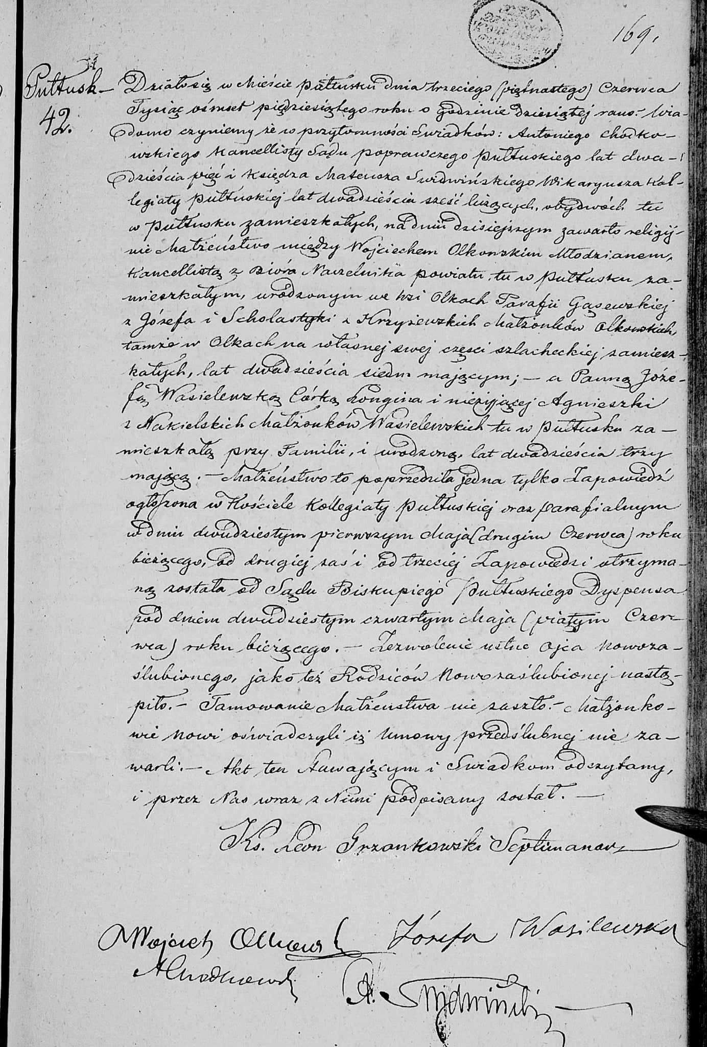 | sw.272322 | sw.272323 (sw.272323) | | | 1850 | | xpar.743 | Akt małżeństwa: Pułtusk (obecn. woj. mazow.), rok 1850, nr aktu 42 [indeks na http://geneteka.genealodzy.pl/] [podgląd] | | | Akt ślubu obecny w bazie Geneteka |