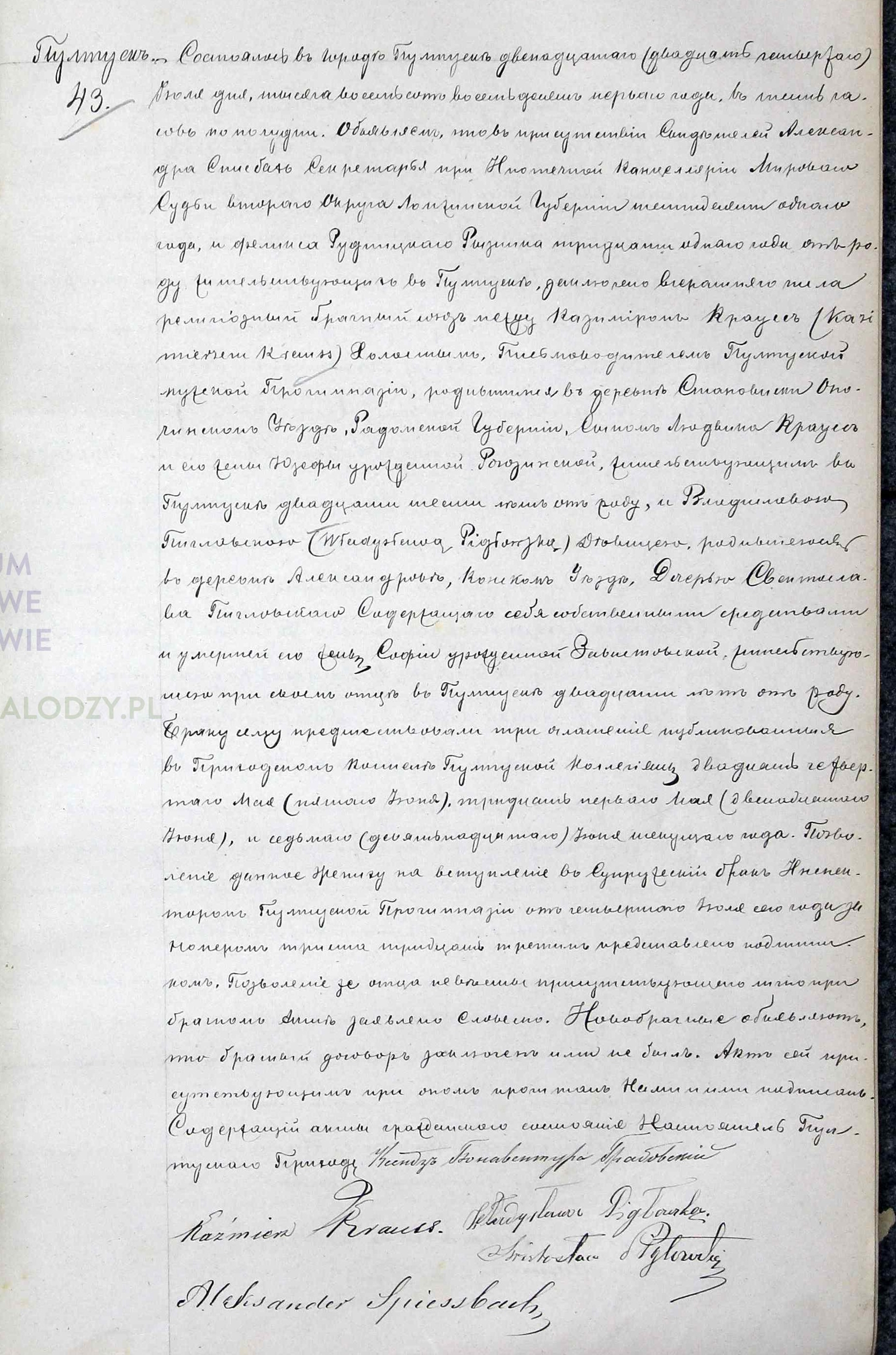 | sw.272935 | sw.272935 | sw.272936 (sw.272936) | sw.272937 (sw.272937) | Akt małżeństwa: Pułtusk (obecn. woj. mazow.), 43/1881 [indeks na http://geneteka.genealodzy.pl/] http://metryki.genealodzy.pl/metryka.php?ar=6&zs=0005d&sy=1881&kt=2&skan=42-43.jpg [podgląd] |